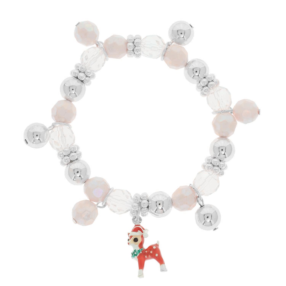 WINTER WONDERLAND CRYSTAL BEADED RUDOLPH ENAMEL COATED MULTI CHARM STRETCH BRACELET