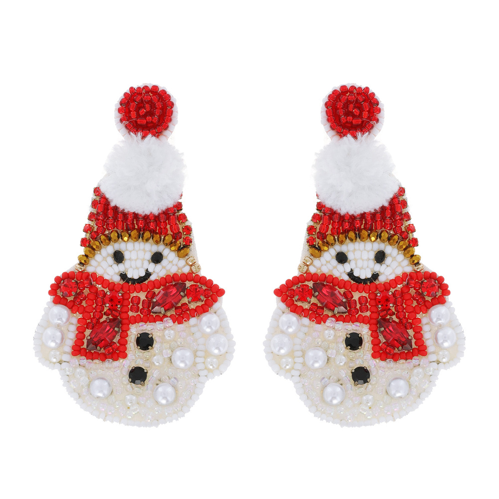 Jeweled Snowman Seed Bead Handmade Beaded Dangle And Drop Novelty Christmas Earrings