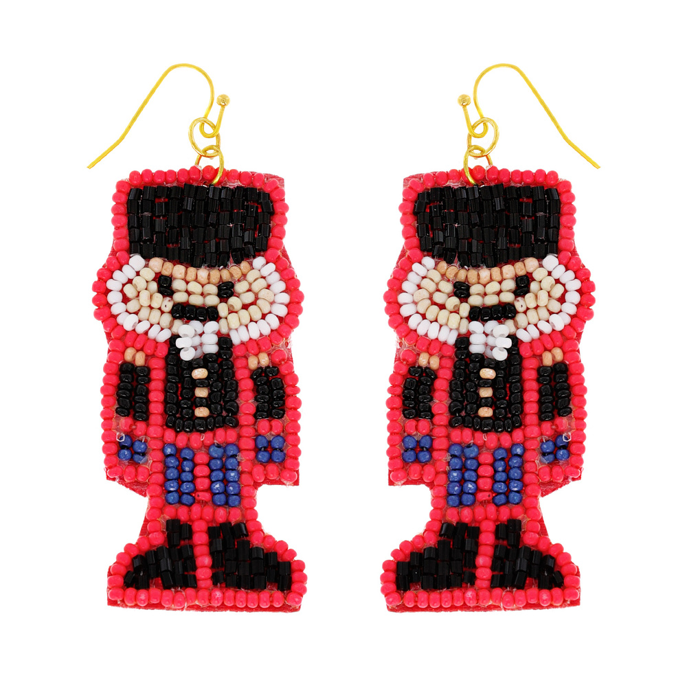 NUTCRACKER BALLET SEED BEAD HANDMADE BEADED DANGLE AND DROP HOOK EARRINGS