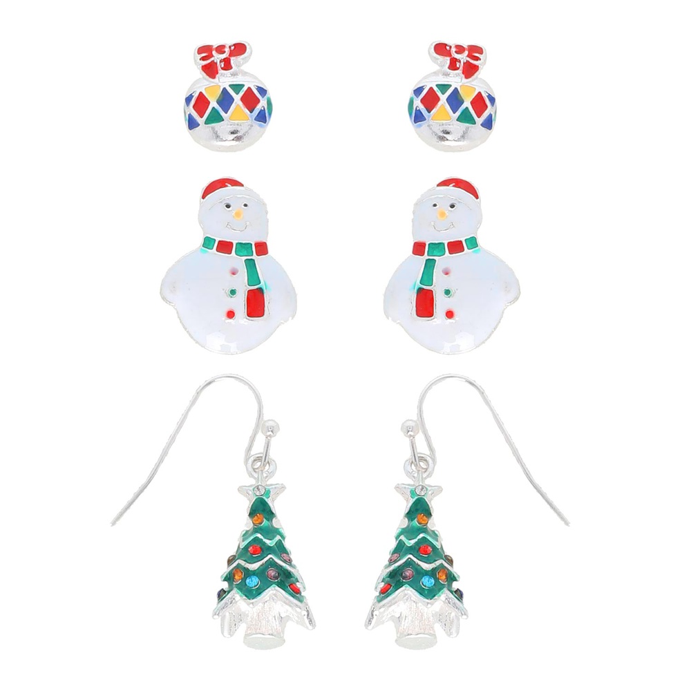 3-pair Christmas Enamel Assorted Earring Set