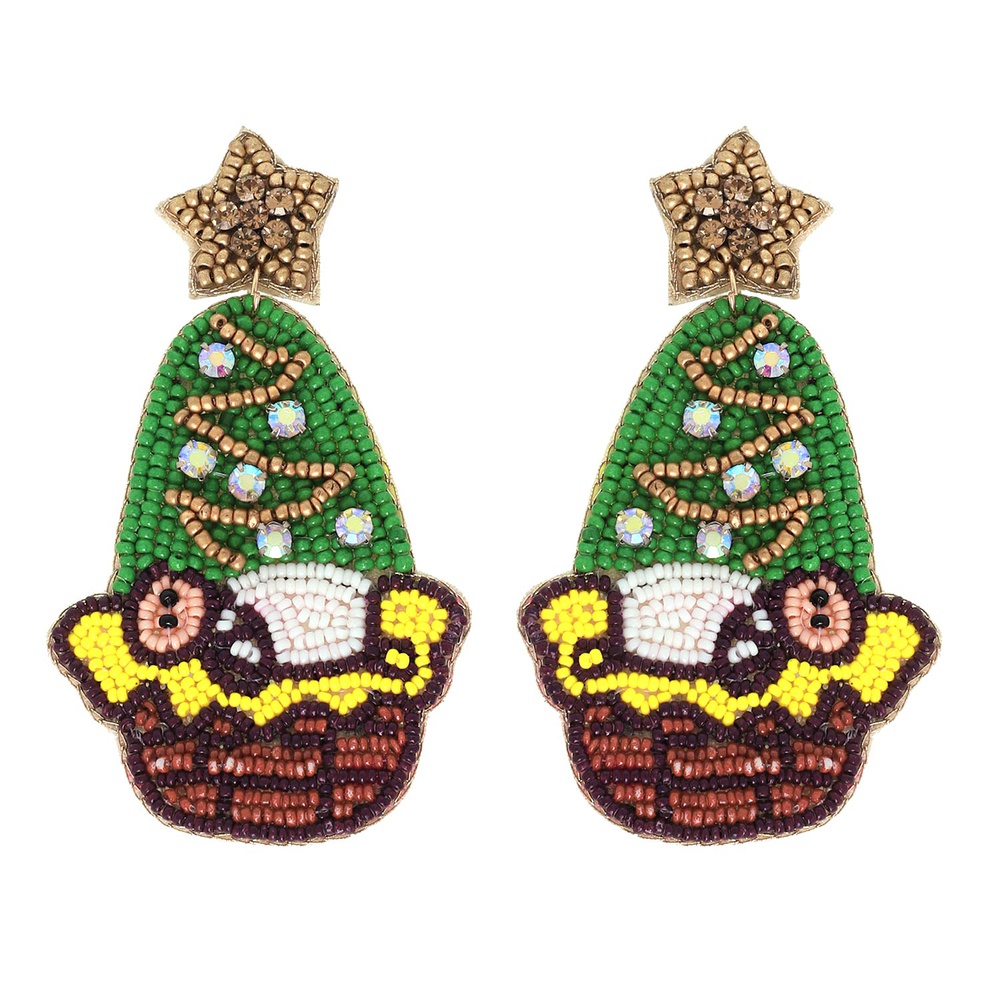 2-TIER NATIVITY SCENE CRYSTAL RHINESTONE BEADED EMBROIDERY CHRISTMAS TREE SHAPED LONG DROP EARRINGS