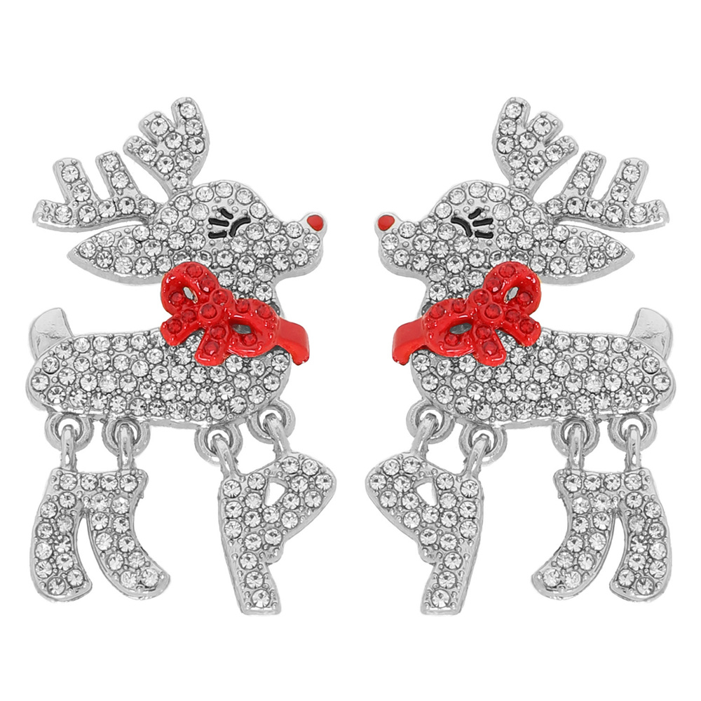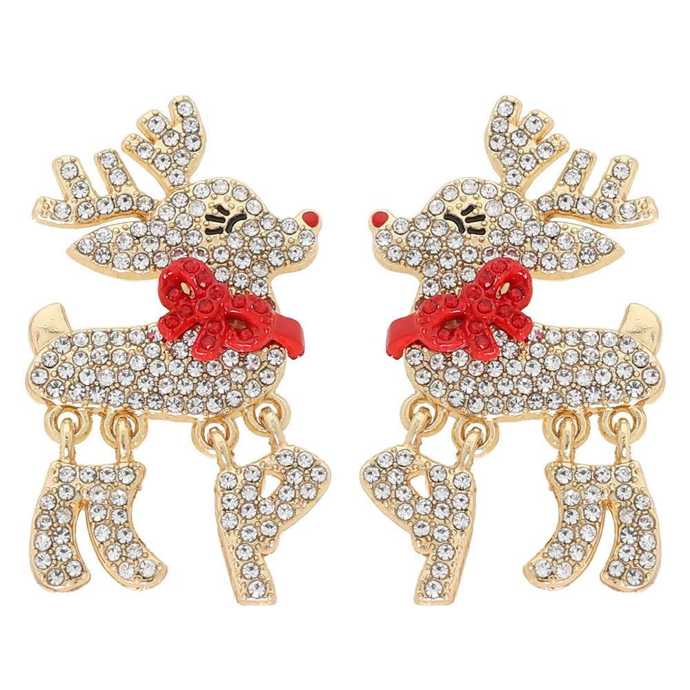 RUDOLPH CRYSTAL RHINESTONE PAVE ENAMEL COATED DANGLE FISH HOOK EARRINGS