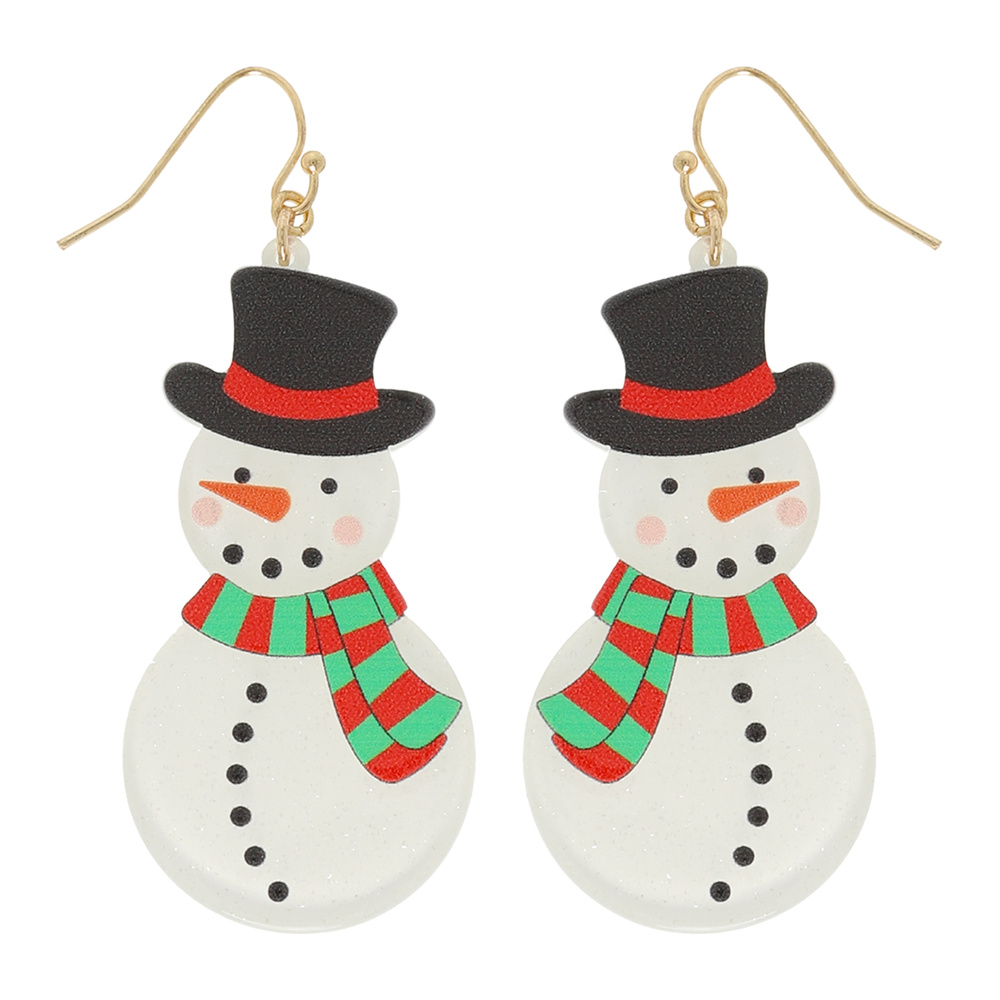CHRISTMAS GLITTERED ACRYLIC SNOWMAN DANGLE EARRINGS