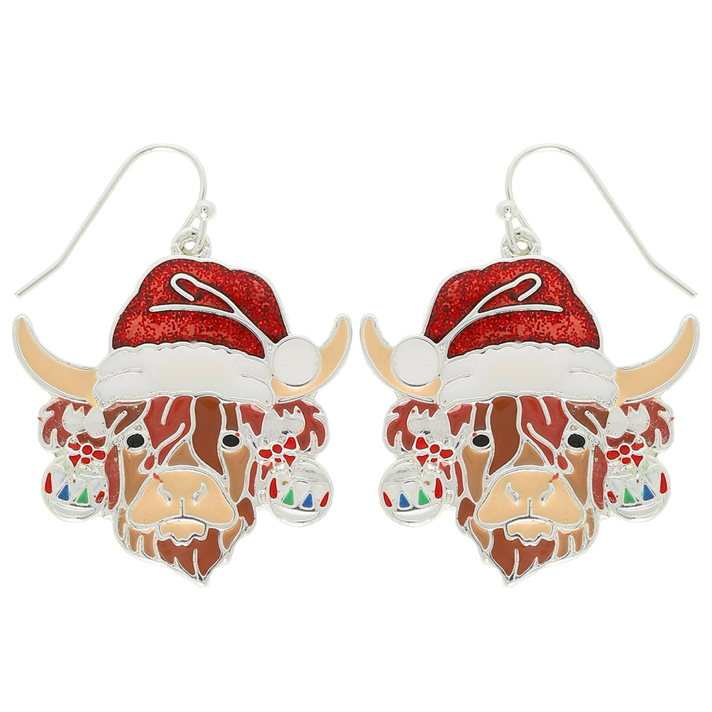 CHRISTMAS WESTERN GLITTERED 3D HIGHLAND COW EARRINGS