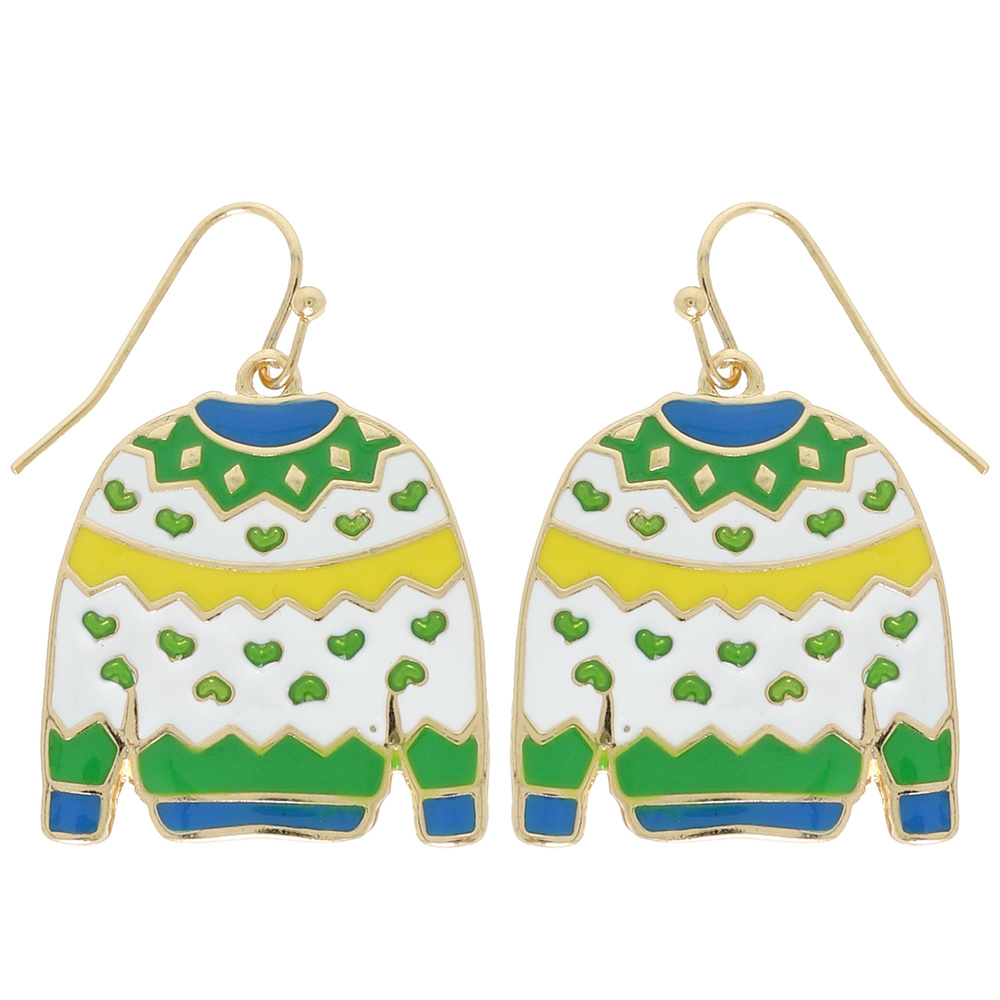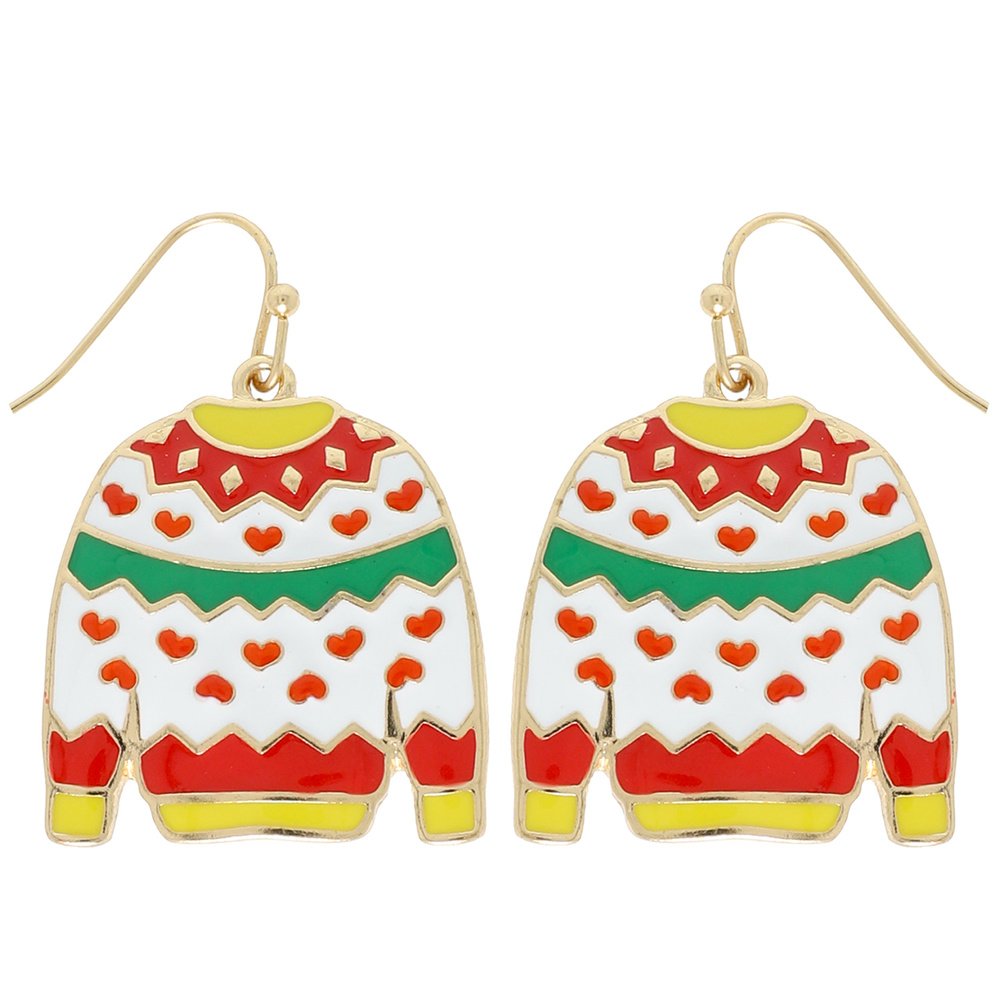 COLORFUL UGLY CHRISTMAS SWEATER EPOXY DANGLE EARRINGS