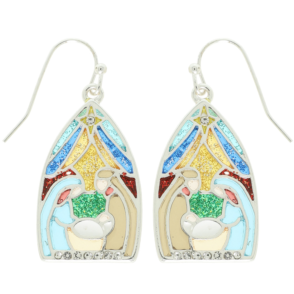 CHRISTMAS NATIVITY THEME EPOXY DANGLE RHINESTONE EARRINGS