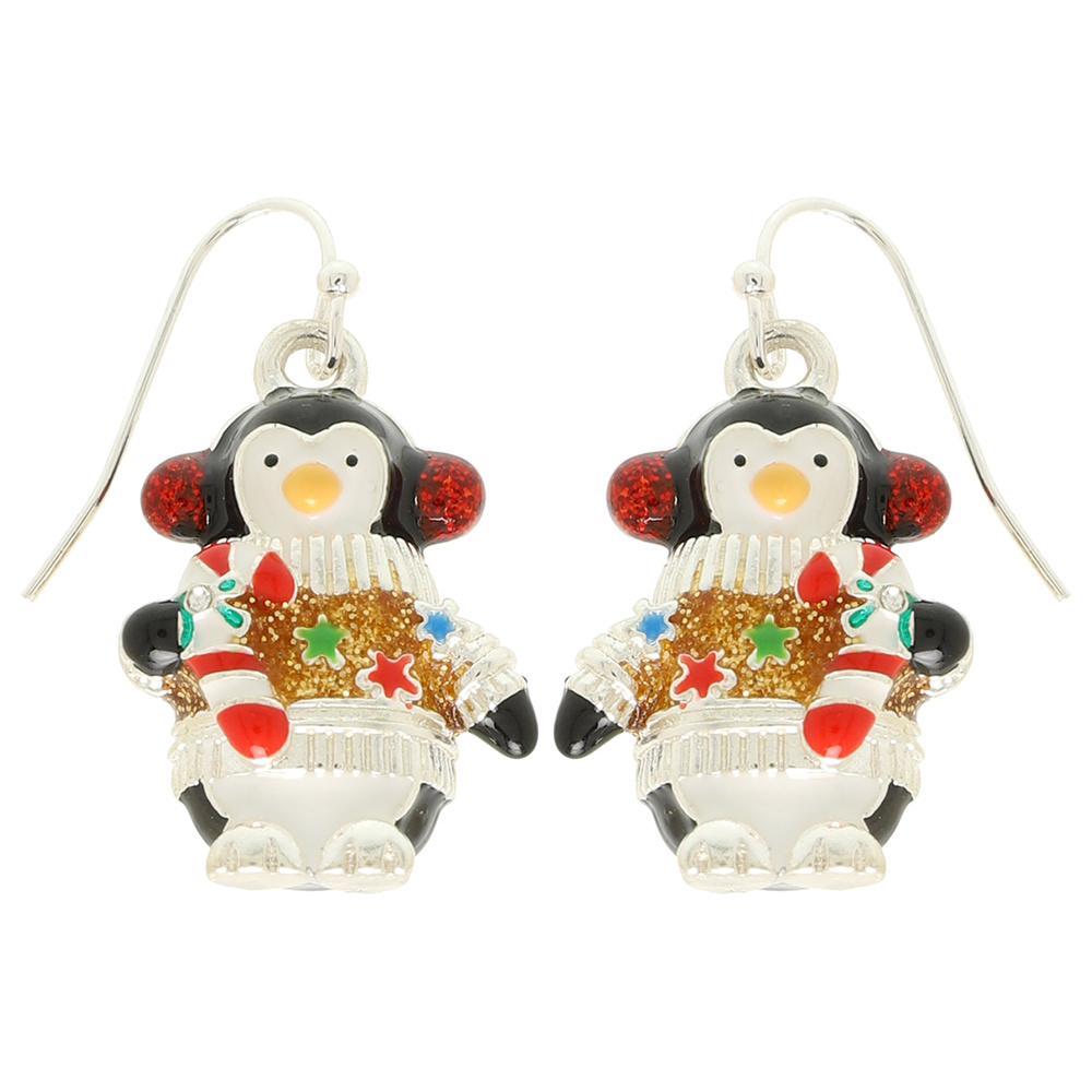 3D EPOXY CHRISTMAS SWEATERED PENGUIN DANGLE EARRINGS