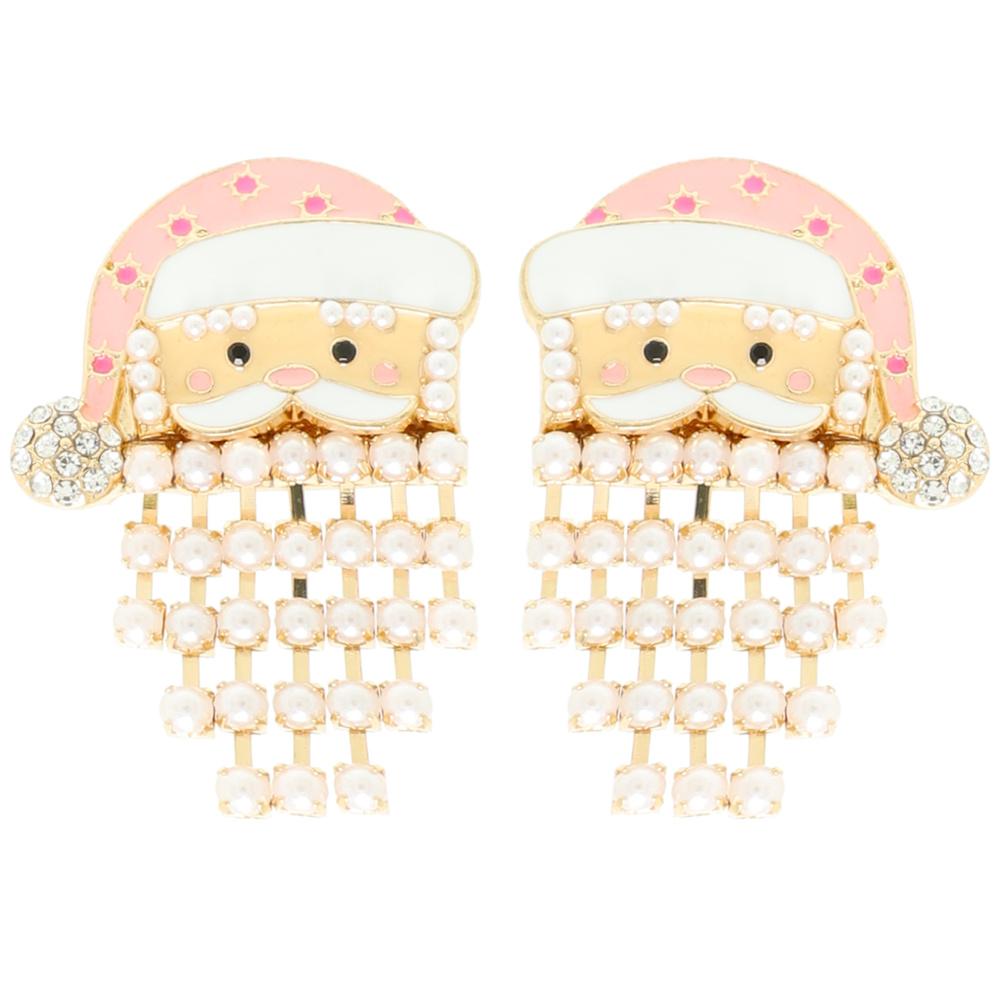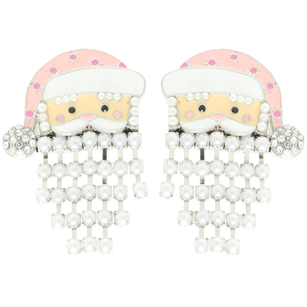 CHRISTMAS RHINESTONE PEARL PAVE SANTA CLAUS POST EARRINGS