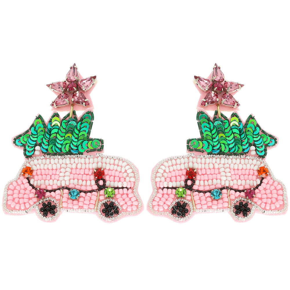 CHRISTMAS TREE TRUCK CRYSTAL SEQUINS BEAD EMBELLISHED POST DANGLE EARRINGS