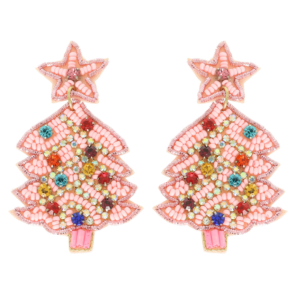 CRYSTAL SEED BEAD EMBELLISHED CHRISTMAS TREE POST DANGLE EARRINGS