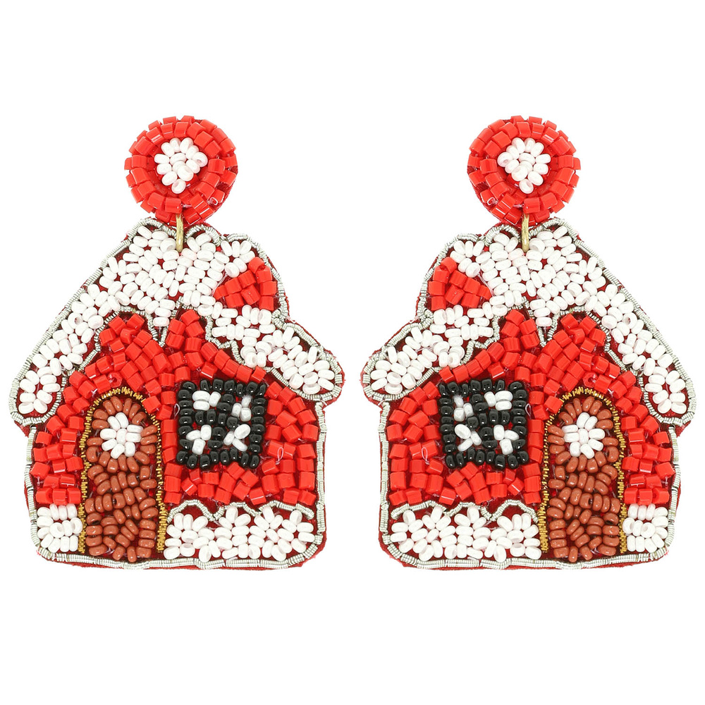 CHRISTMAS GINGERBREAD HOUSE SEED BEADED POST DANGLE EARRINGS