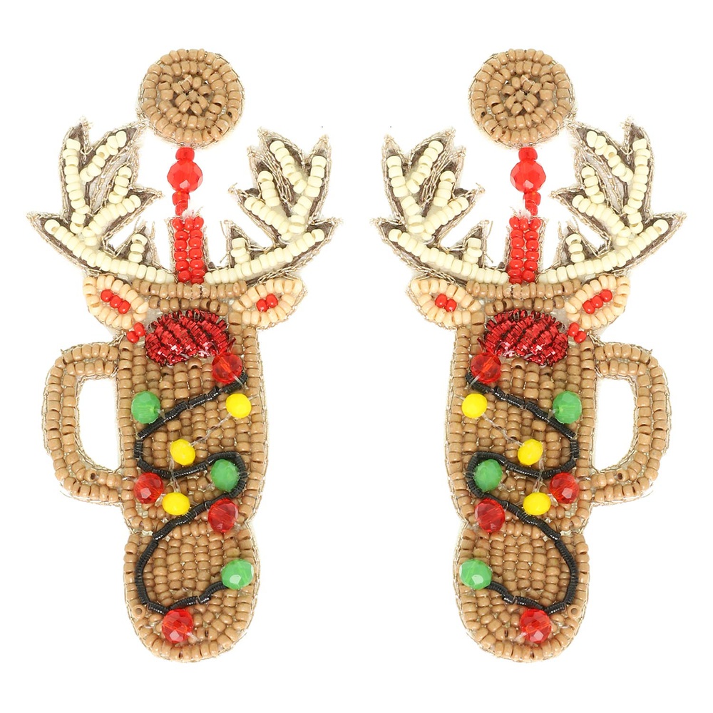 CHRISTMAS RUDOLPH'S CUP SEED BEADED POST DANGLE EARRINGS WITH COLORFUL ACCENTS