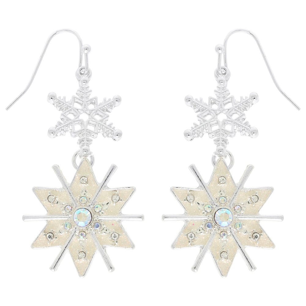 CHRISTMAS SNOWFLAKE DANGLE EARRINGS WITH STAR DESIGN AND CRYSTAL ACCENTS