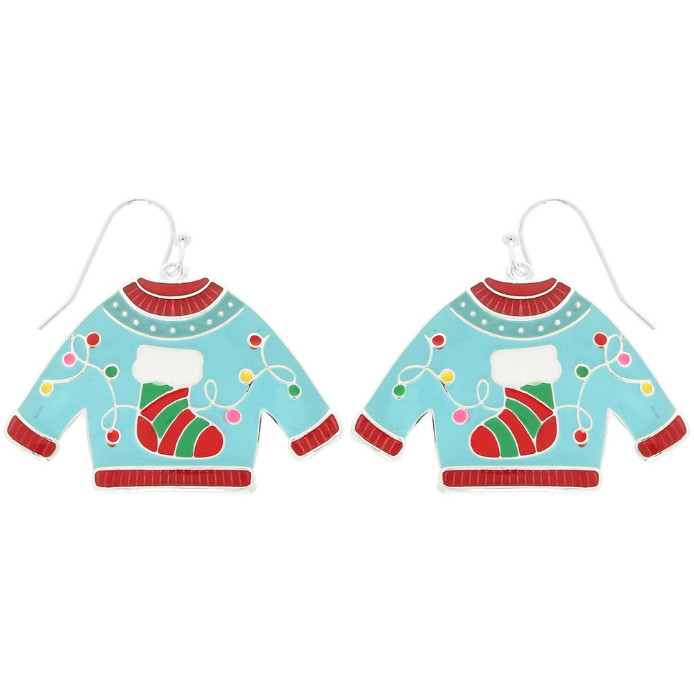 CHRISTMAS THEME UGLY SWEATER ENAMEL FRENCH HOOK EARRINGS