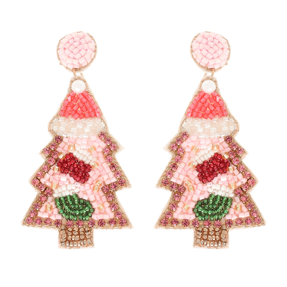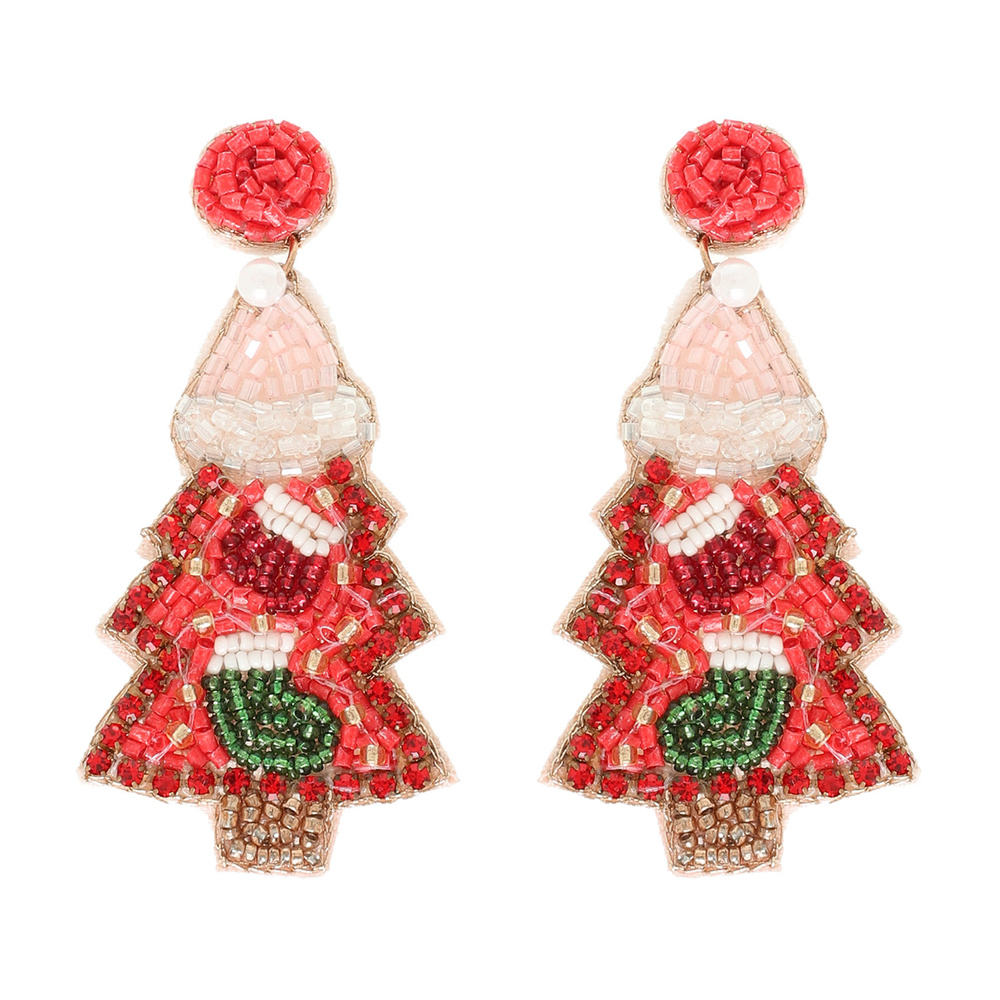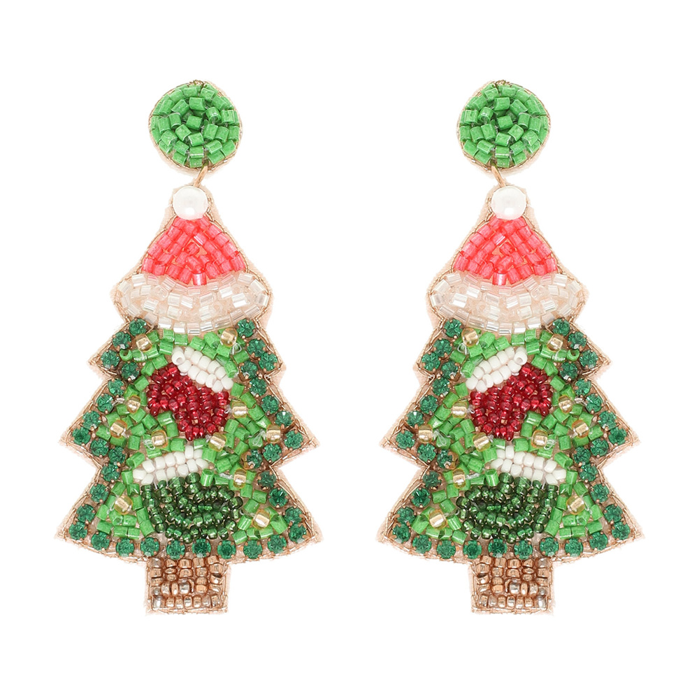 CHRISTMAS TREE SEED BEADED POST DANGLE EARRINGS WITH STOCKING STUFFERS ACCENT DESIGN