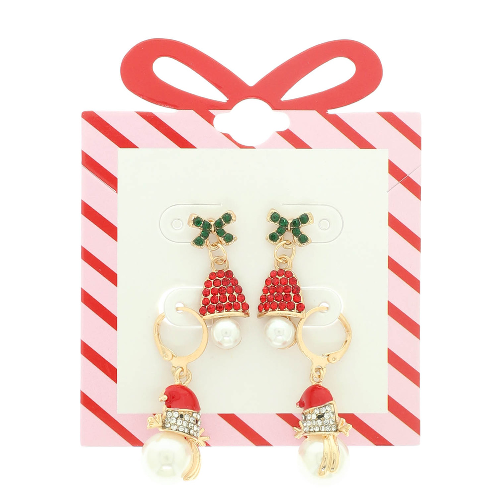 EARRING SET WITH PEARL ACCENTED ELF AND SANTA DESIGN AND RHINESTONE ACCENTS