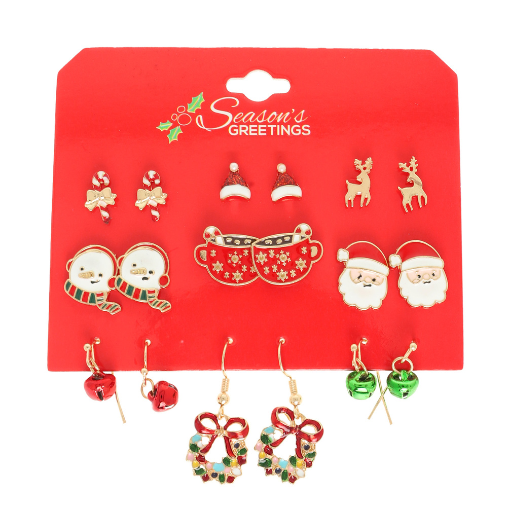 CHRISTMAS MULTI DESIGN CHRISTMAS ENAMEL EARRINGS SET