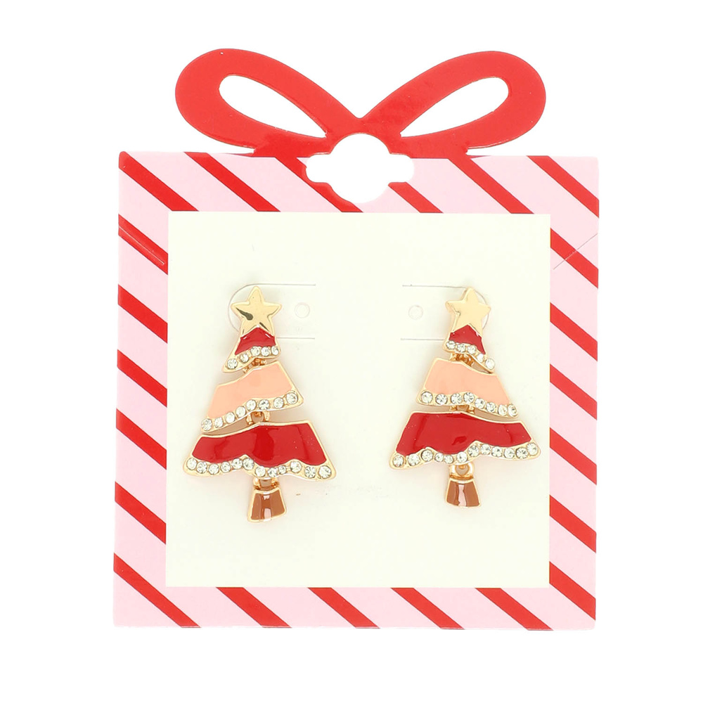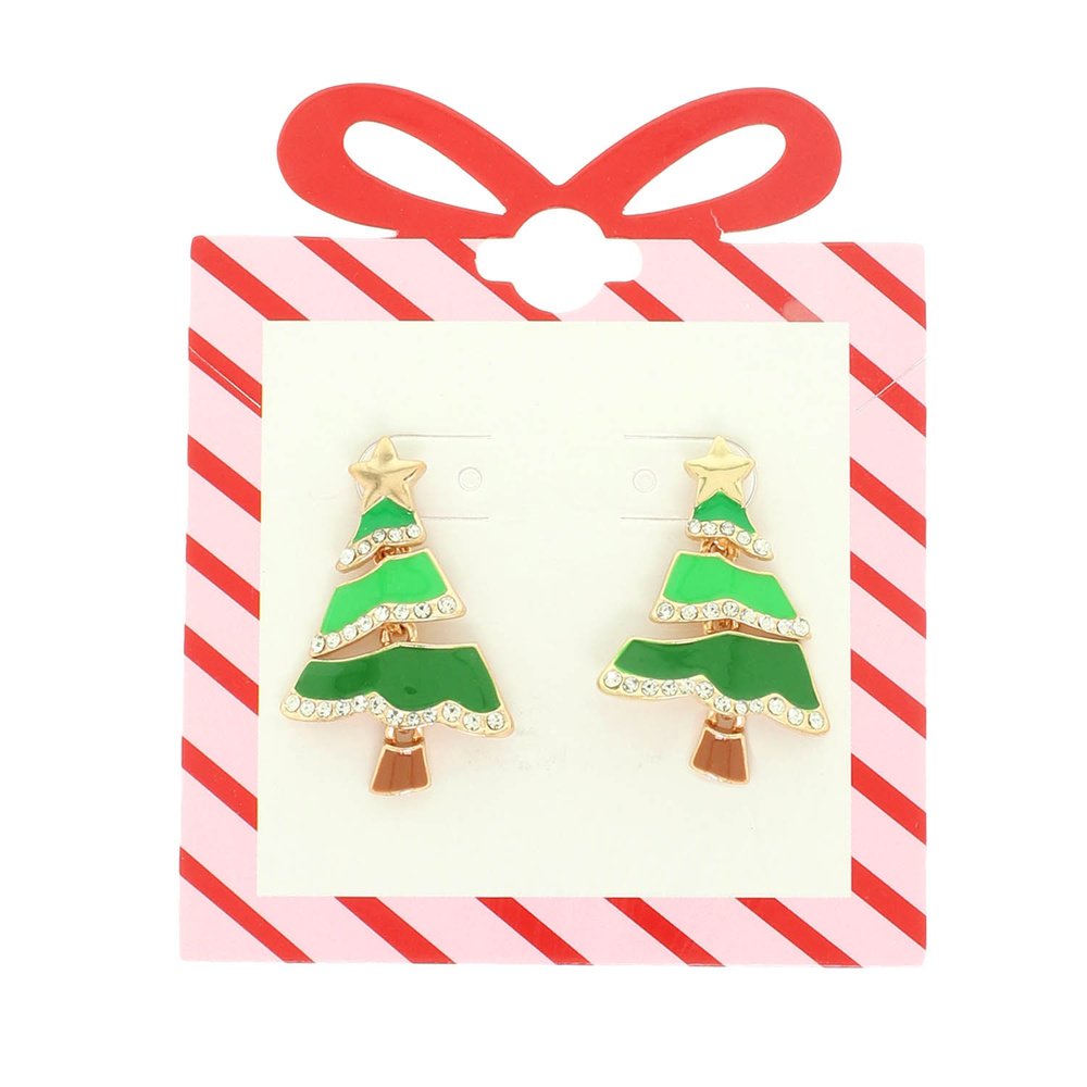 CHRISTMAS TREE ENAMEL POST EARRINGS STAR TOPPER RHINESTONE TRIM ACCENT