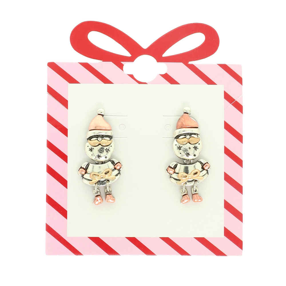 CHRISTMAS METALLIC TWO TONE SANTA CLAUS POST EARRINGS WITH BRONZE TONE METAL FINISH