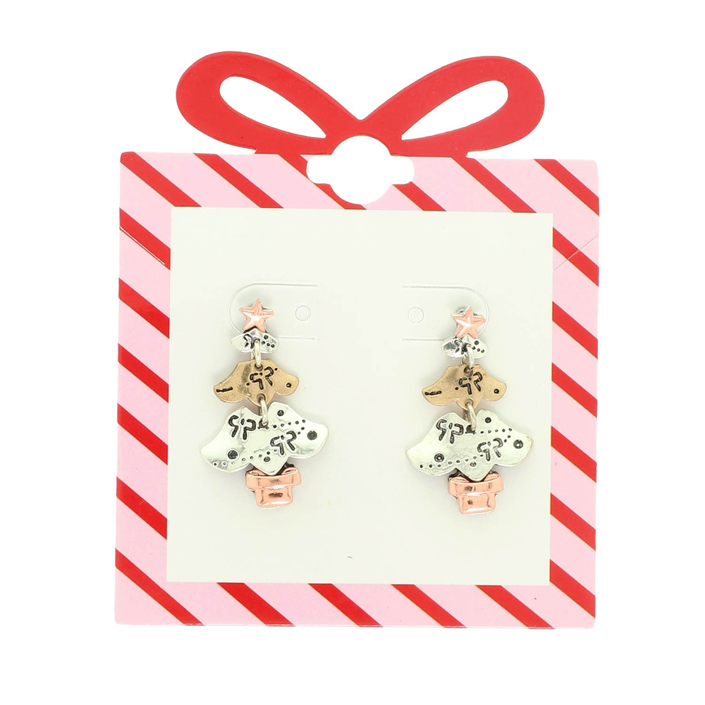 CHRISTMAS TREE SHAPED POST EARRINGS WITH STAR ACCENT AND TWO TONE METAL FINISH