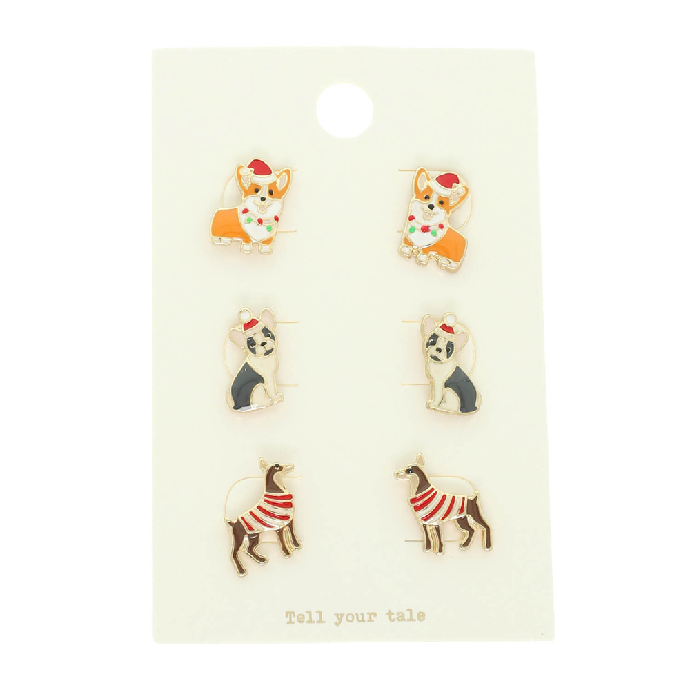 CHRISTMAS THEME STUD EARRING SET WITH CORGI HUSKY GREYHOUND DESIGNS