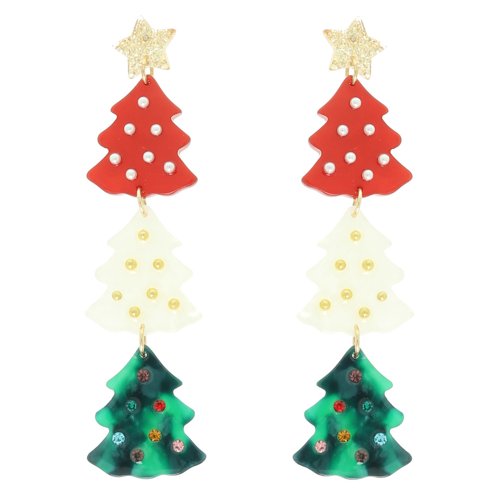 CHRISTMAS TREE LINEAR EARRINGS WITH PEARL AND MULTICOLOR CRYSTAL ACCENTS