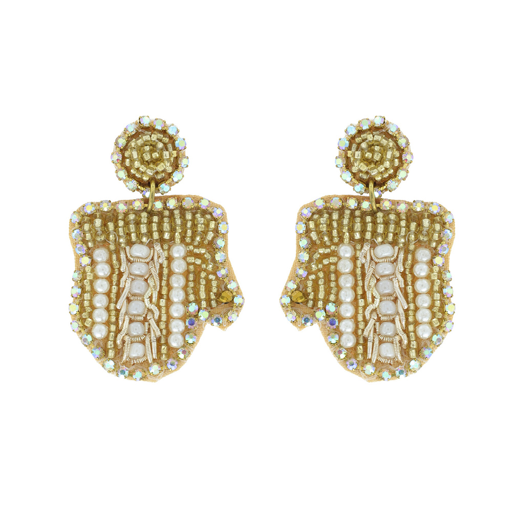 CHRISTMAS WINTER GLOVE SEED BEAD DANGLE EARRINGS