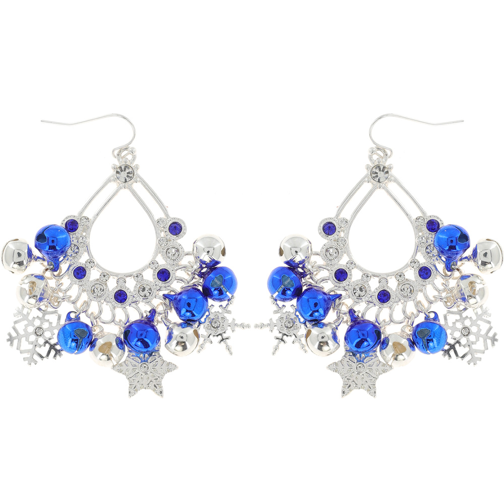 OPEN TEARDROP JINGLE BELLS CRYSTAL RHINESTONE DANGLE AND DROP HOOK EARRINGS