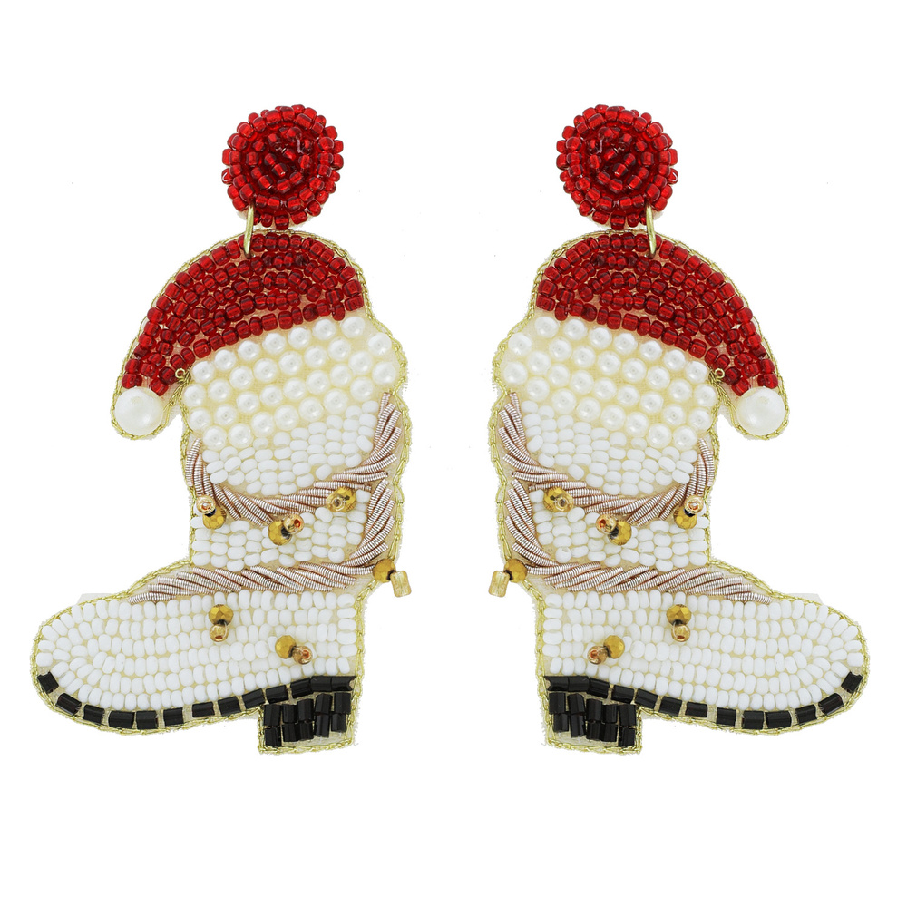 2-tier Santa Hat Christmas Cowboy Boots Pearl Accent Handmade Beaded Embroidery Dangle And Drop Earrings