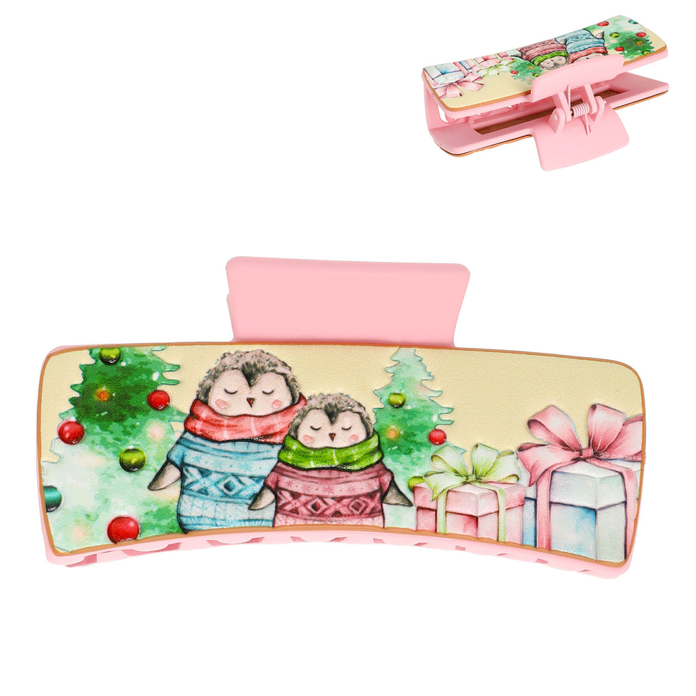 CHRISTMAS PENGUIN THEMED TOOLED LEATHER HAIR CLAW CLIP HEIGHT: 2" WIDTH: 4" DEPTH: 1.5"