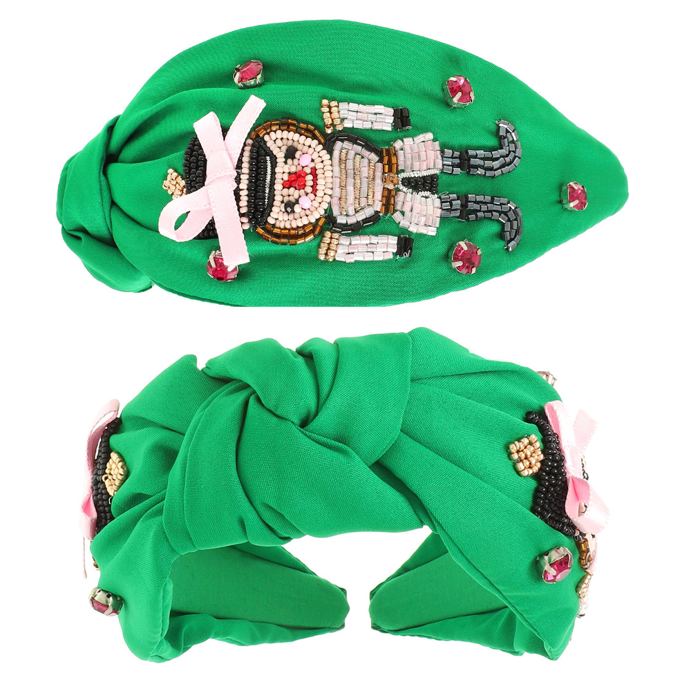 CHRISTMAS NUTCRACKER CRYSTAL SEED BEADED TOP KNOT HEADBAND