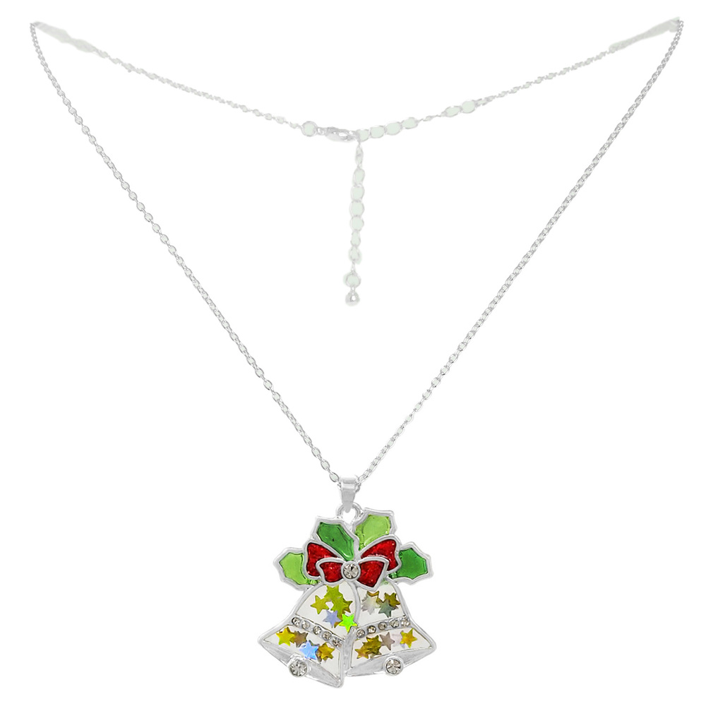 CRYSTAL EMBELLISHED CHRISTMAS JINGLE BELL EPOXY PENDANT NECKLACE