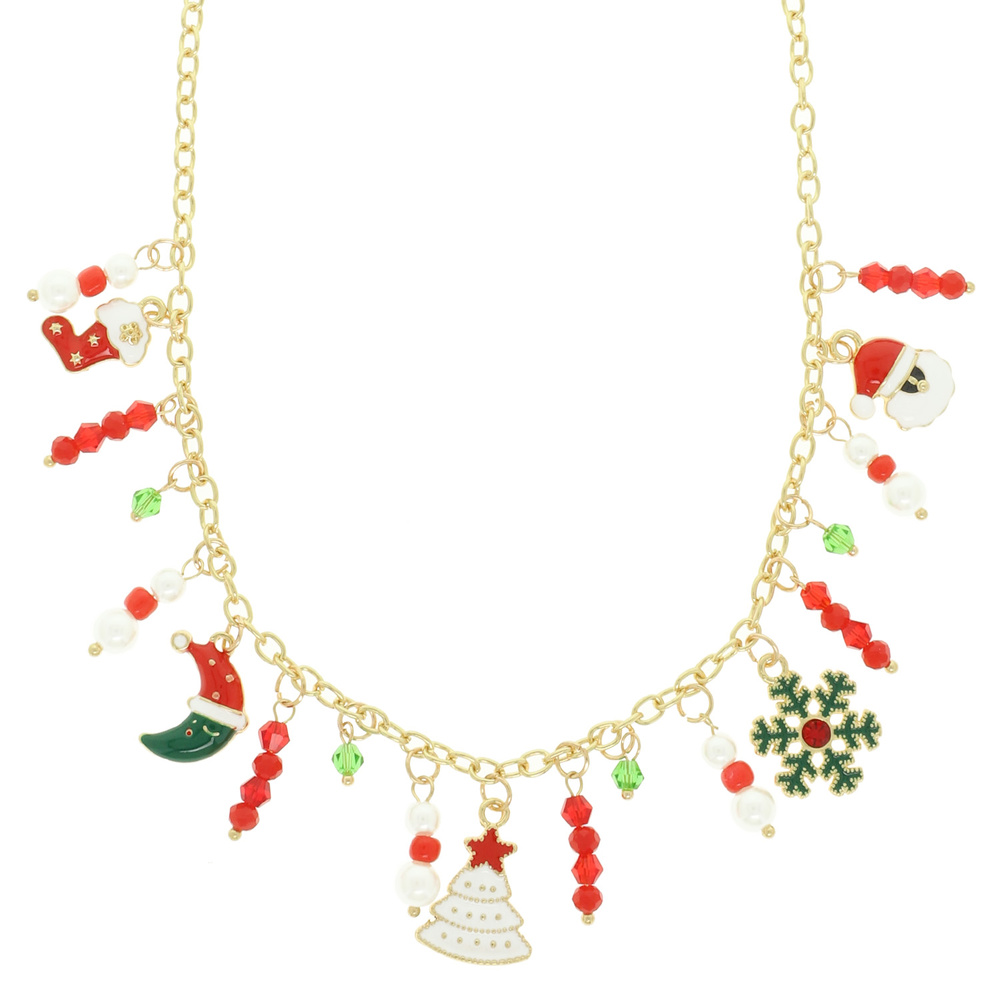 CHRISTMAS THEMED MULTI CHARM NECKLACE WITH FESTIVE PENDANTS