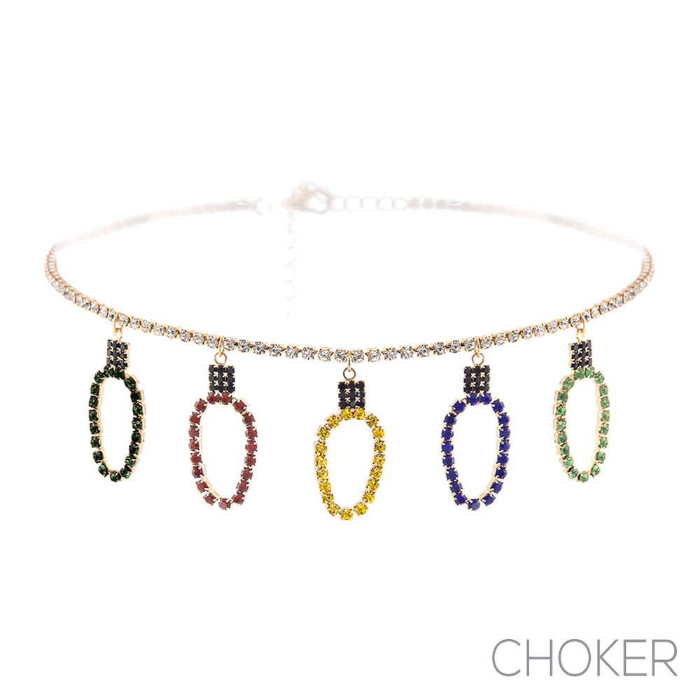 CHRISTMAS LIGHTS - MULTI CHARM CRYSTAL RHINESTONE PAVE ADJUSTABLE NECKLACE IN GOLD TONE METAL
