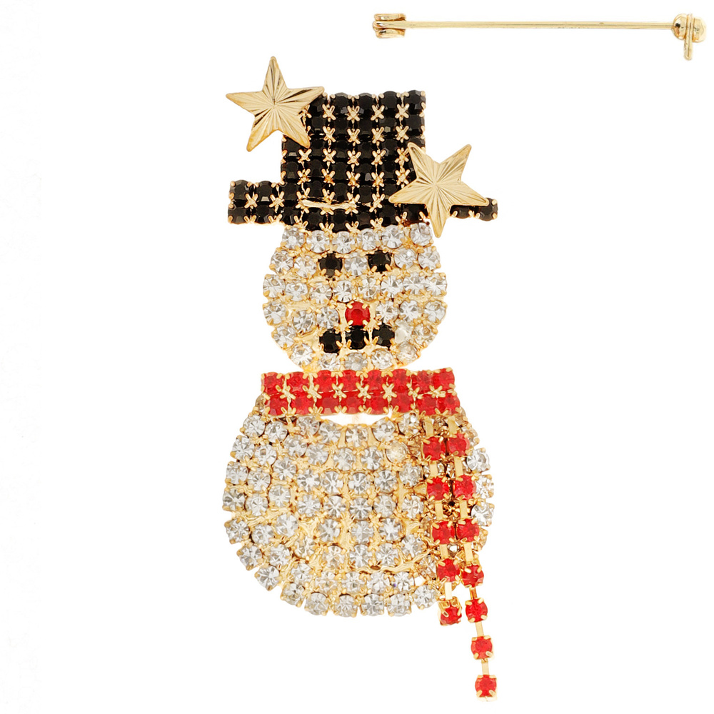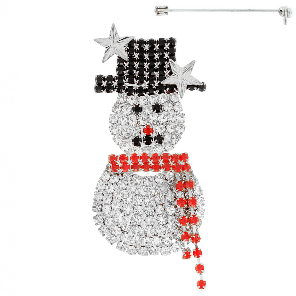 RHINESTONE SNOWMAN BROACH W/ HAT AND SCARF