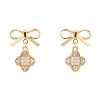 • BOW WITH CLOVER POST DANGLE EARRINGS