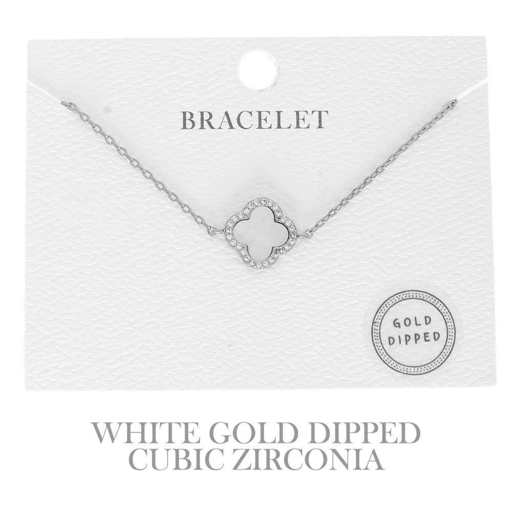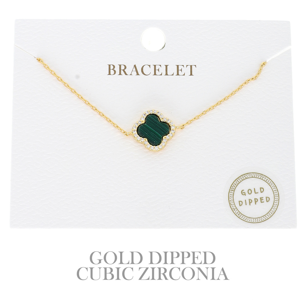 ADJUSTABLE GOLD-DIPPED ENAMEL RHINESTONE PAVE FOUR LEAF CLOVER BRACELET