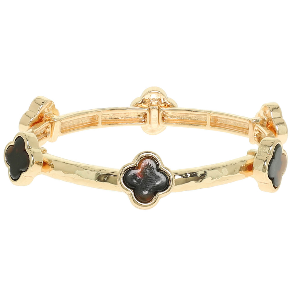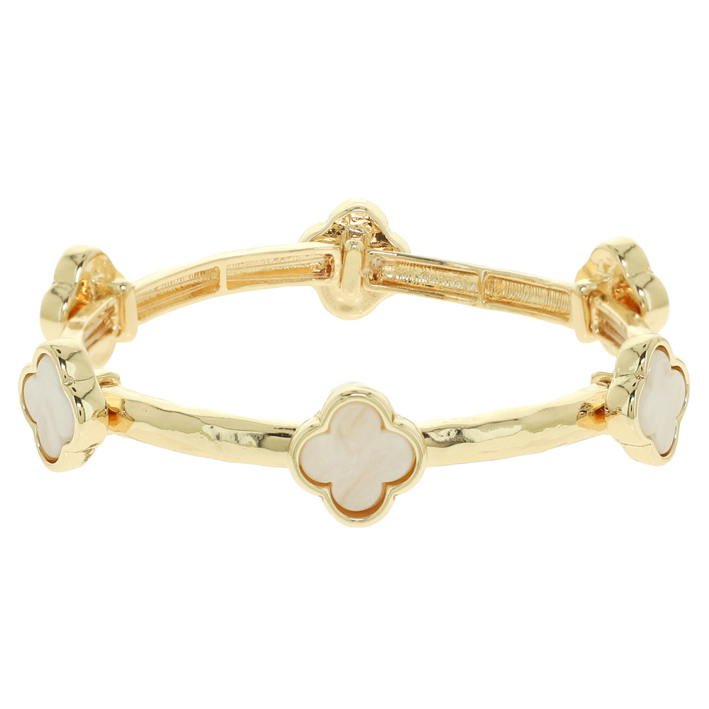 POLISHED PEARLESCENT EPOXY CLOVER STRETCH BRACELET IN GOLD-TONE METAL