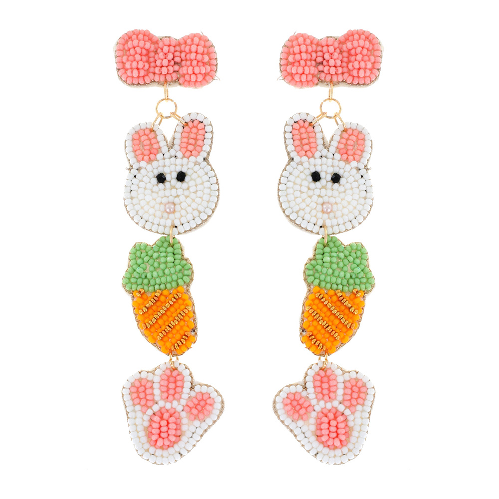 2-TIER EASTER THEMED BEADED EMBROIDERY LONG DROP EARRINGS