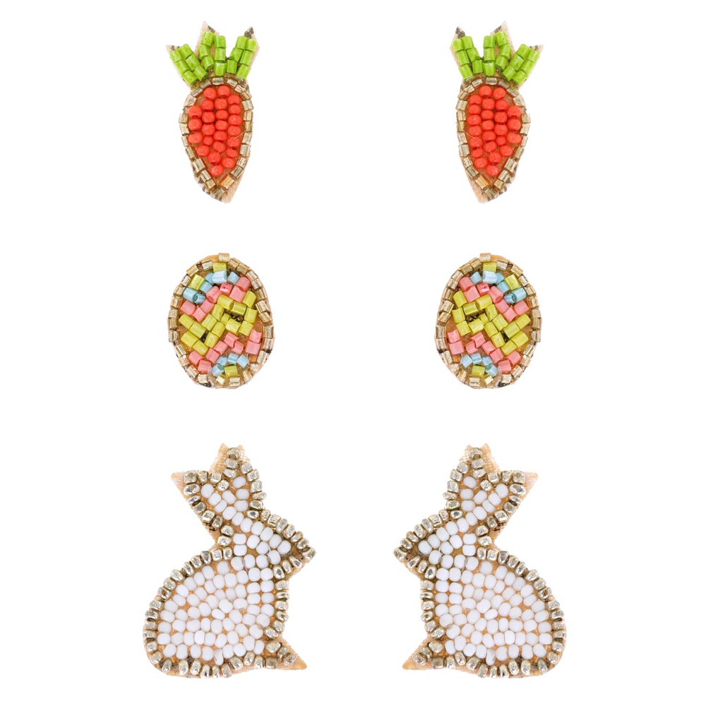 3-pair Assorted Easter Beaded Embroidery Drop Earring Set