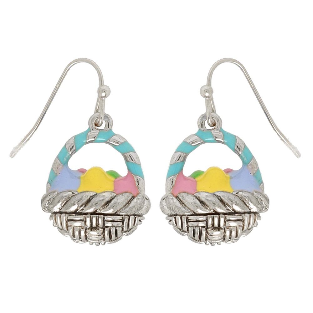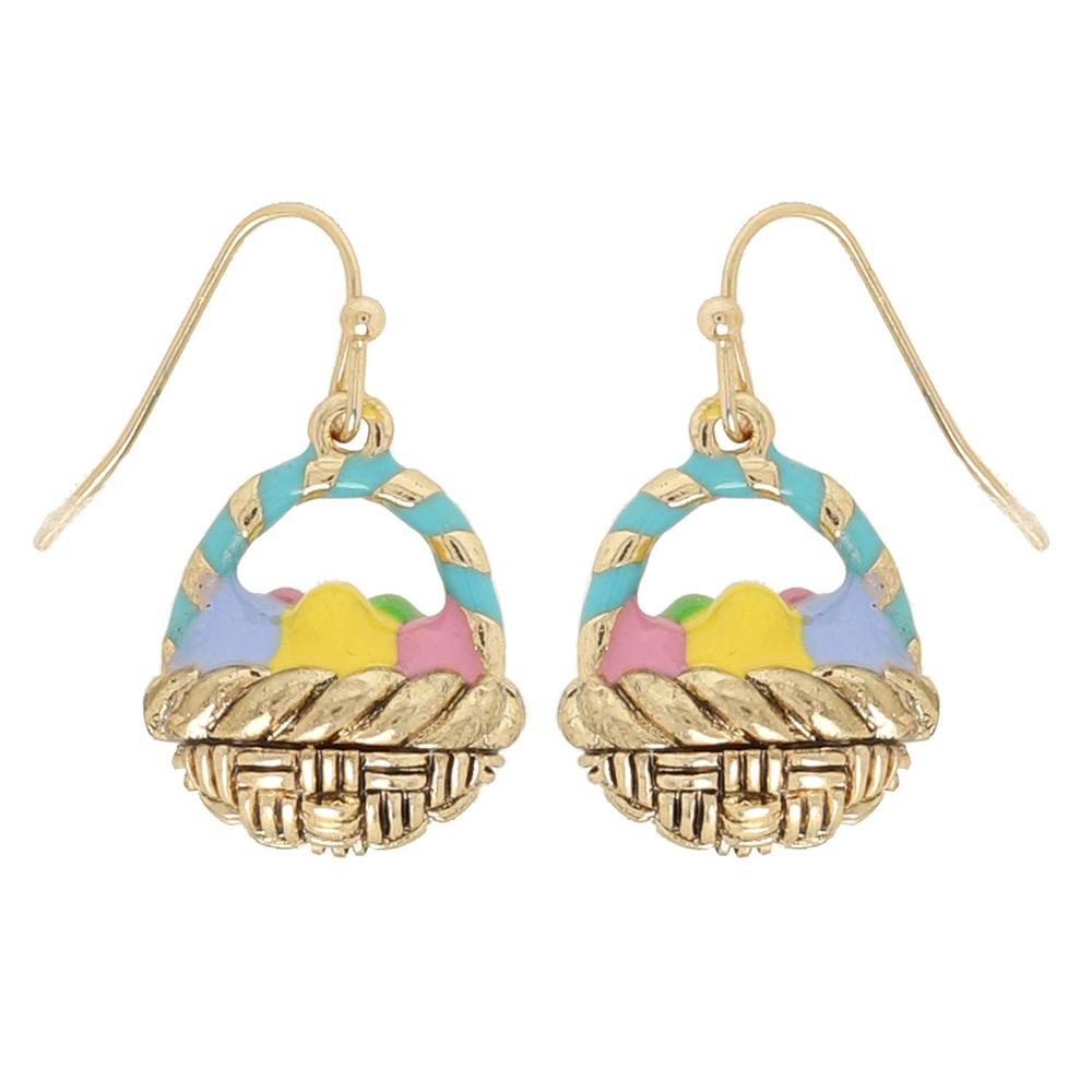 MULTICOLOR EASTER EGG BASKET ENAMEL COATED FISH HOOK DROP EARRINGS