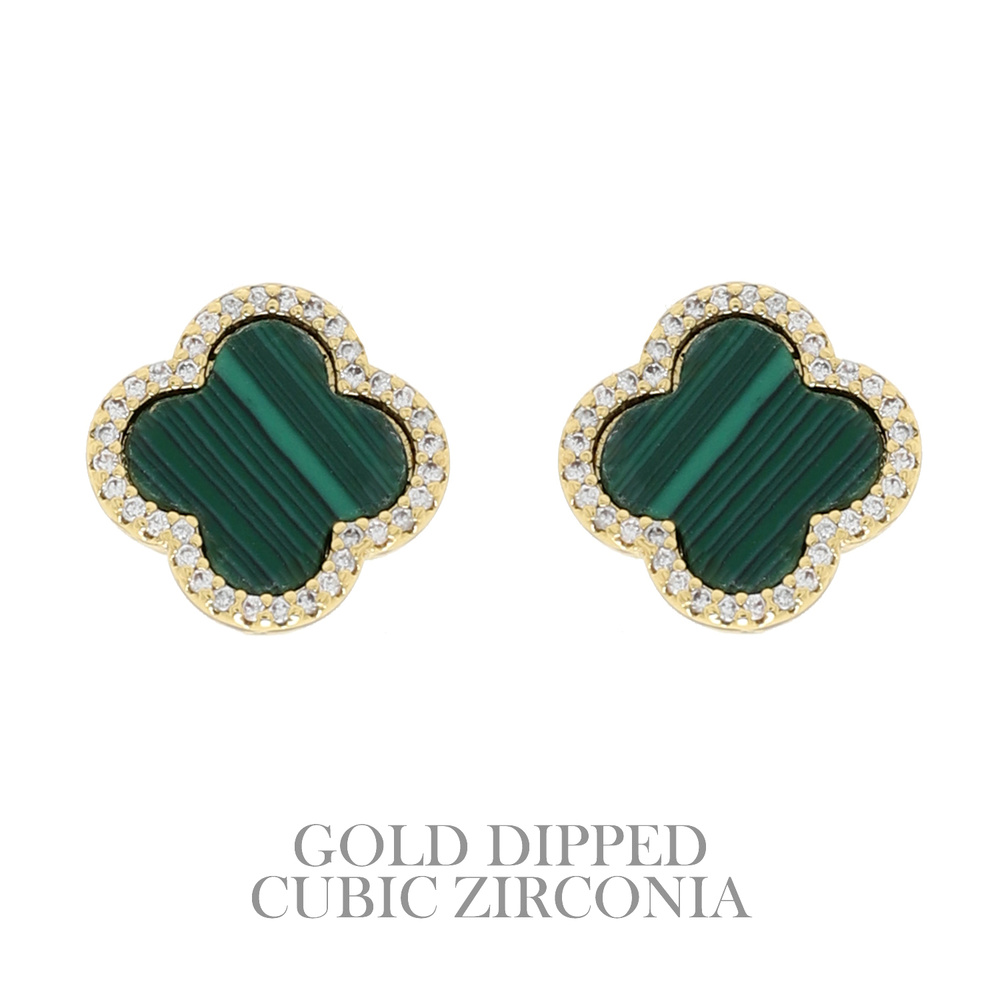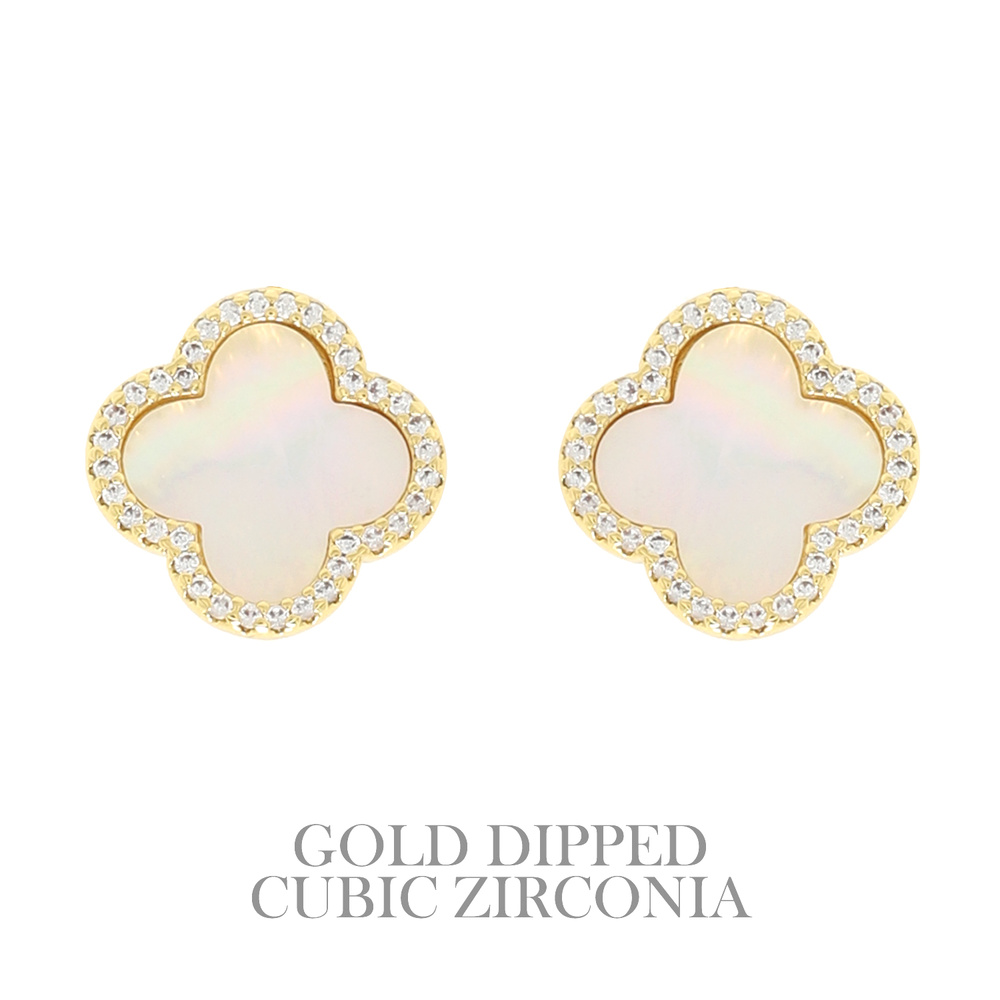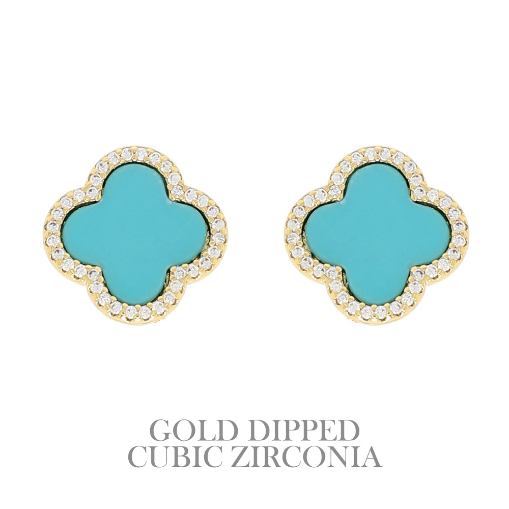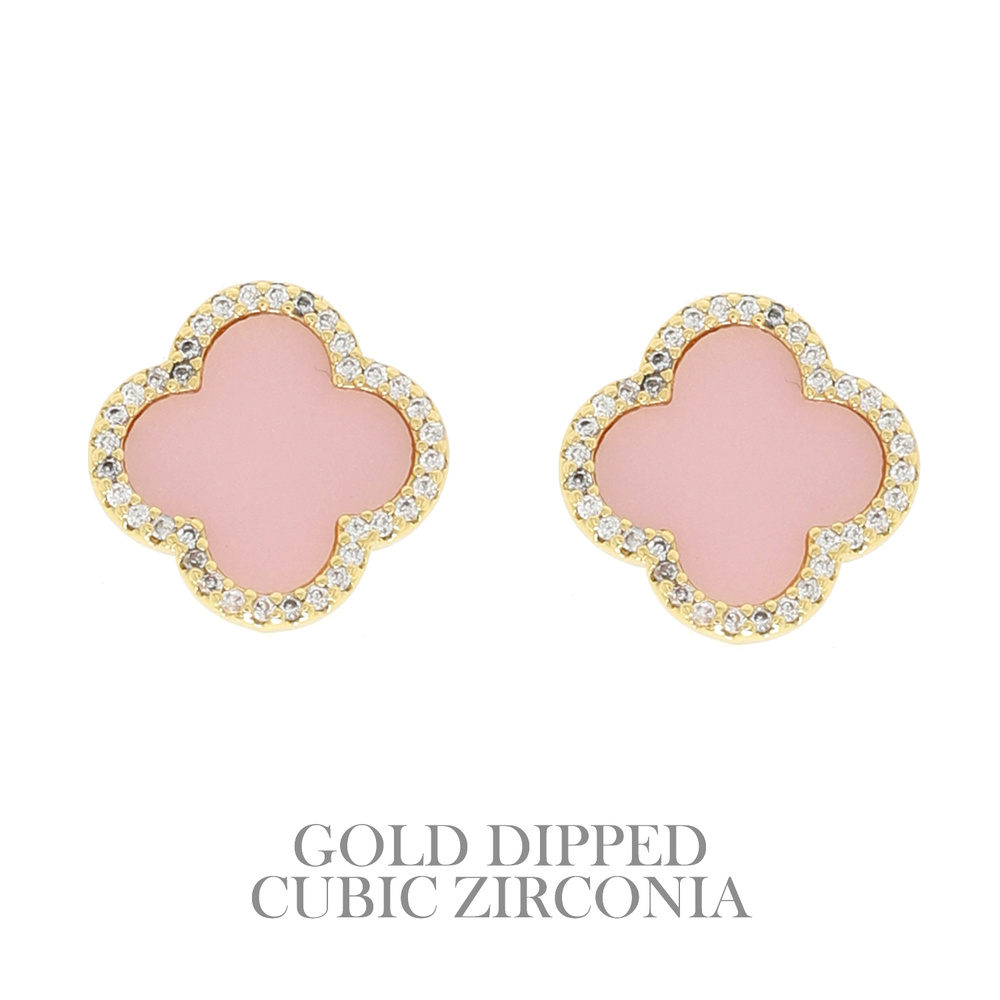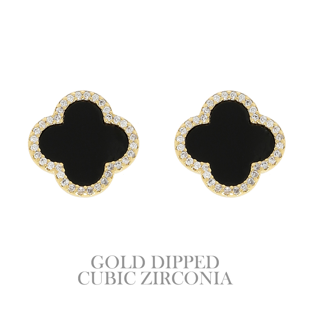 ENAMEL FOUR LEAF CLOVER RHINESTONE PAVE GOLD-DIPPED POST EARRINGS