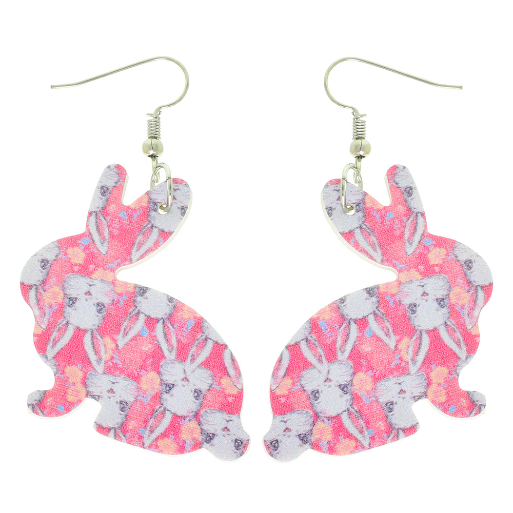 EASTER BUNNY PATTERN PRINT GRAPHIC DANGLE EARRINGS