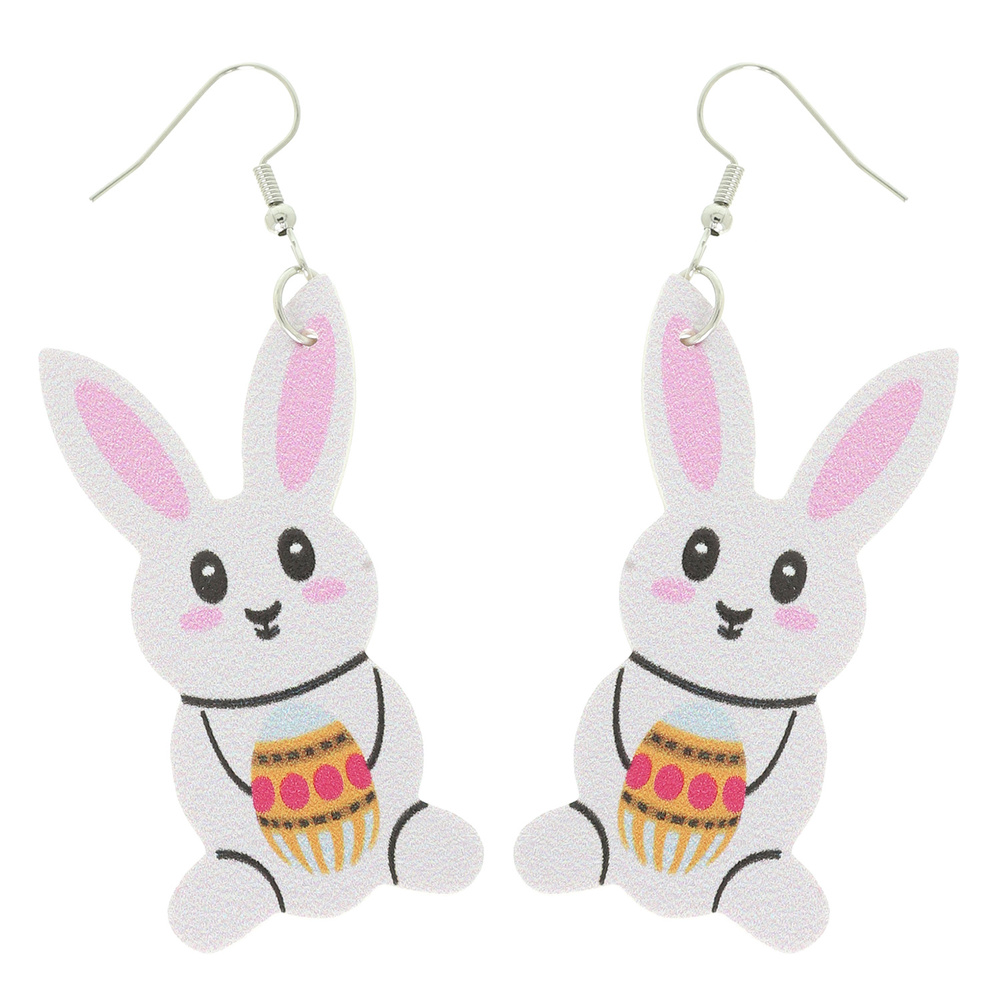 MULTICOLOR EASTER BUNNY WITH EGG PU LEATHER DANGLE EARRINGS
