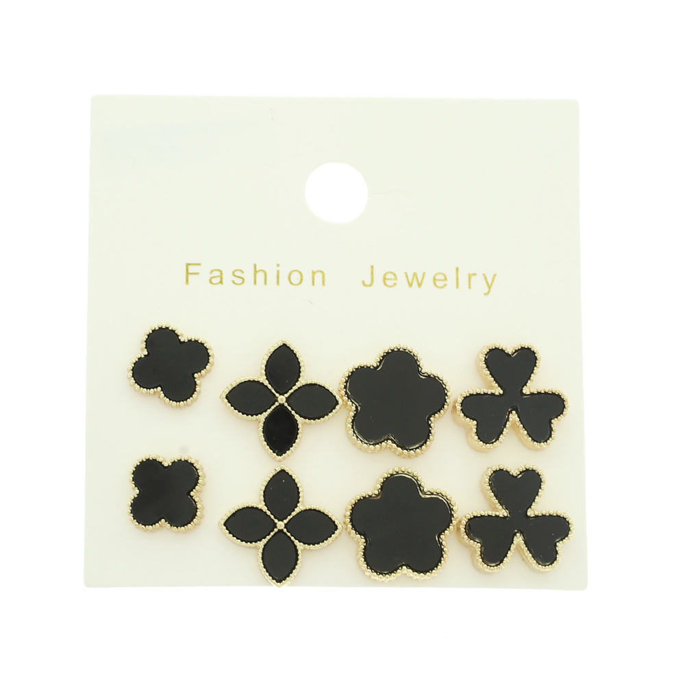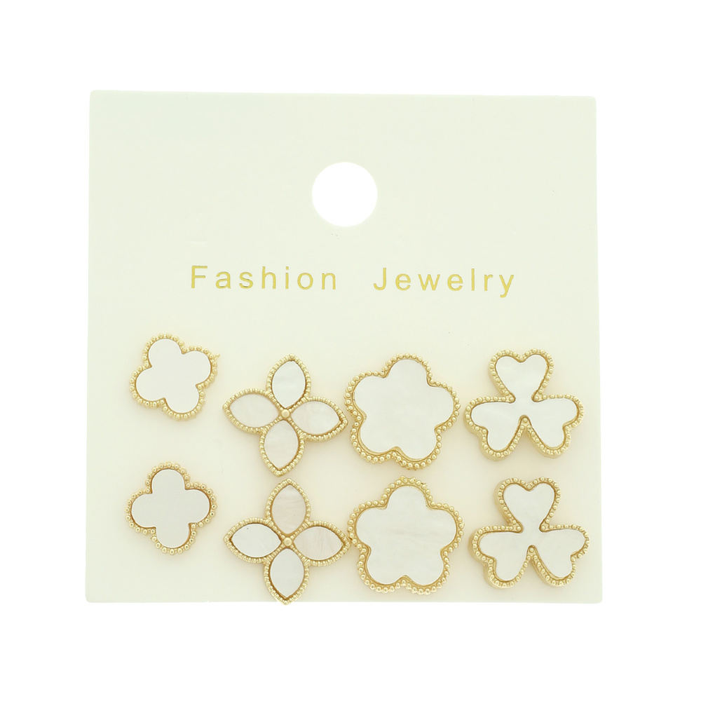 4-PAIR WHITE PEARLESCENT ENAMEL CLOVER THEME STUD EARRING SET