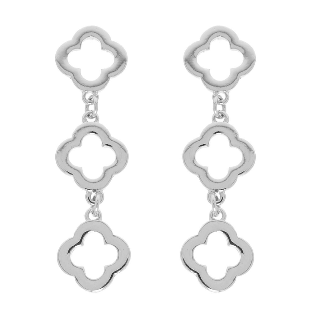 POLISHED QUATREFOIL CLOVER LINEAR POST EARRINGS IN SILVER TONE METAL