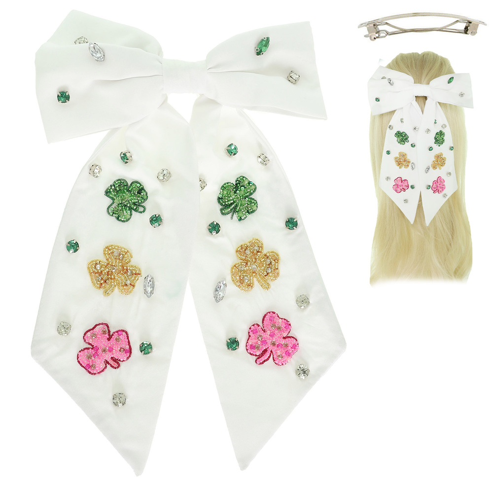 St. Patricks Shamrock Bow Barrette Hair Clip