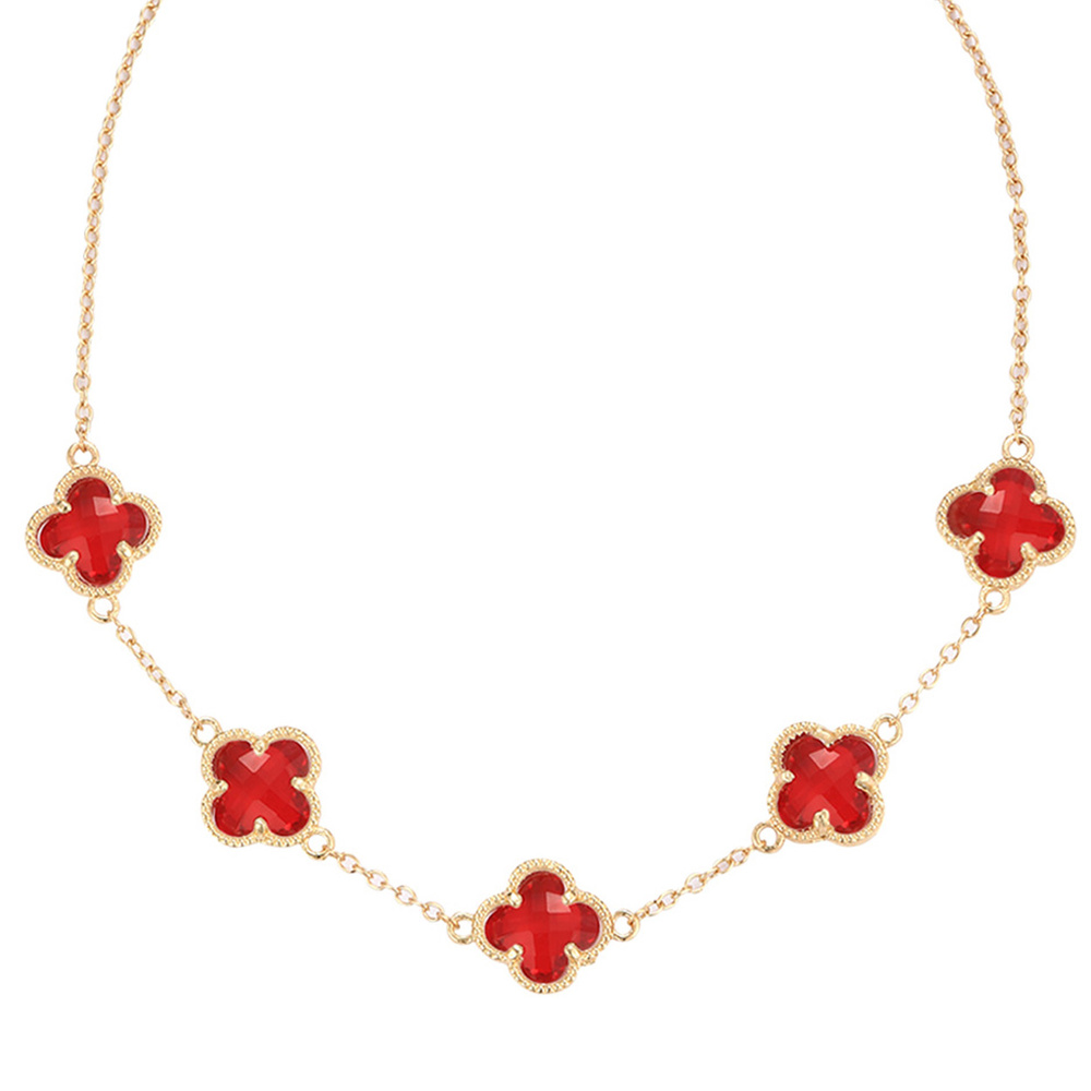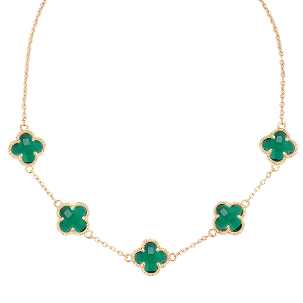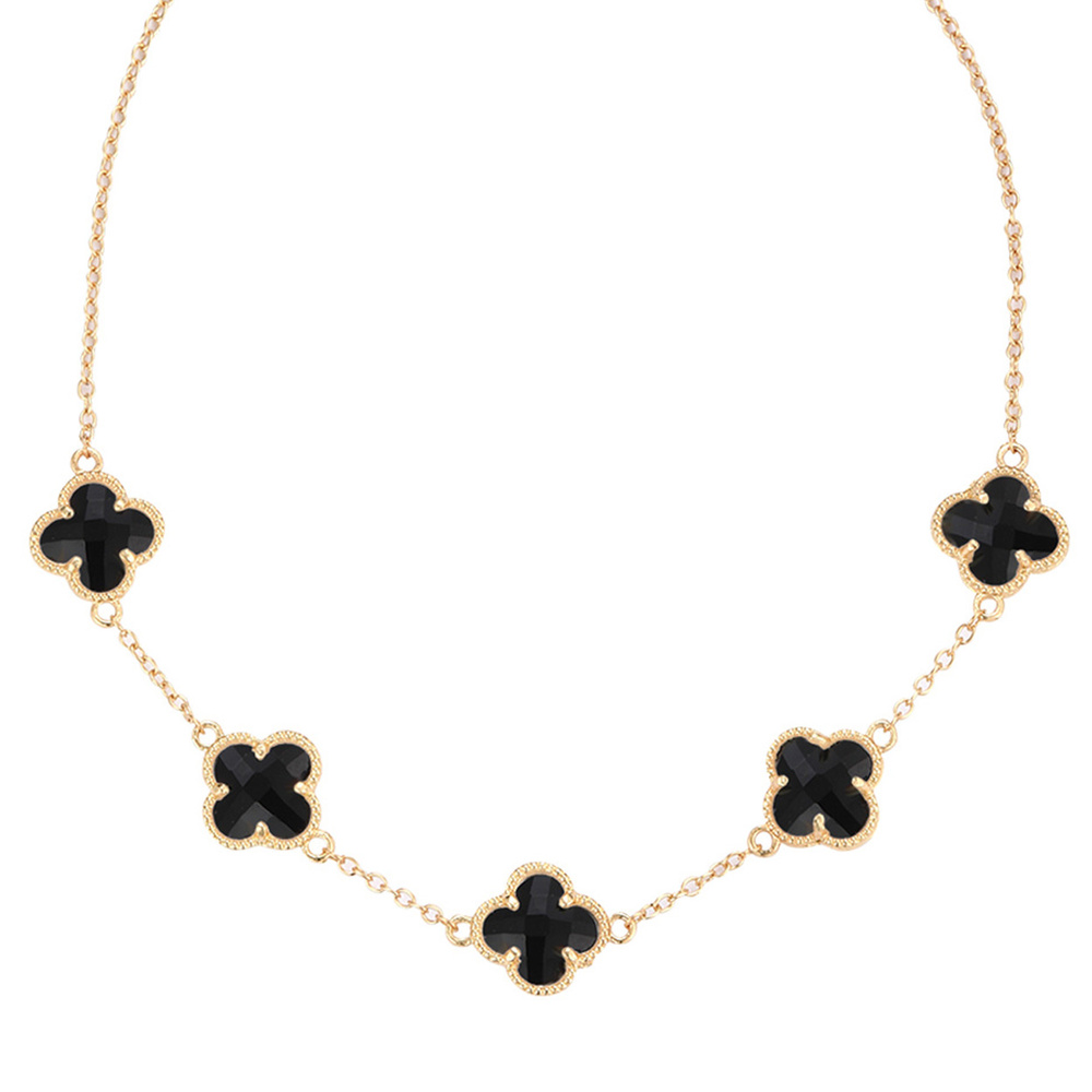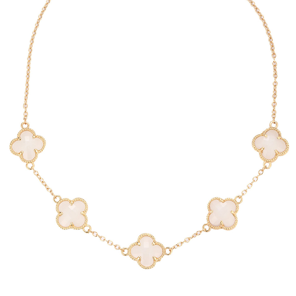 ENAMEL CLOVER CHARM STATION NECKLACE IN GOLD TONE METAL