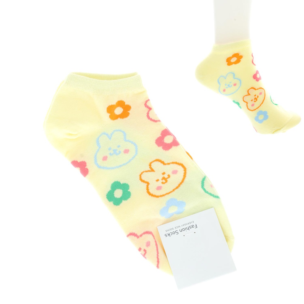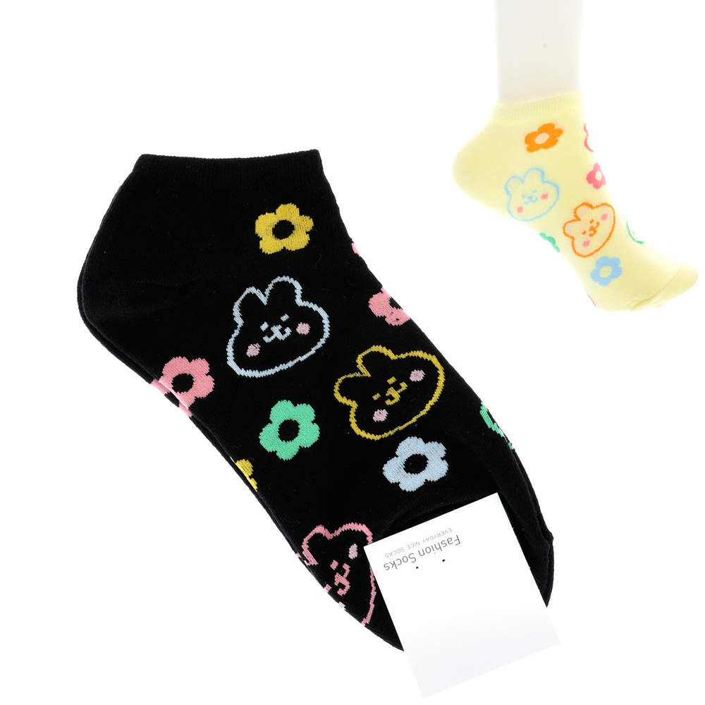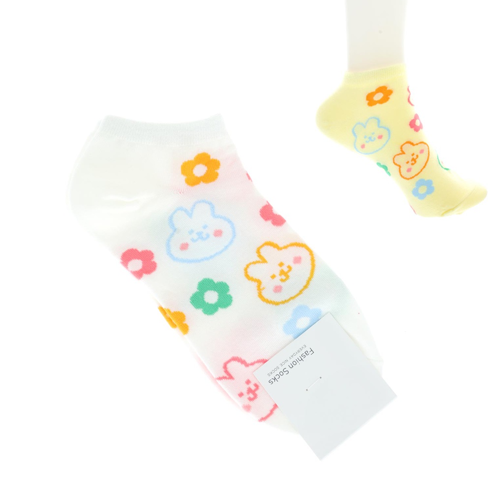 MULTICOLOR ADULT SIZE WOMEN'S BUNNY RABBIT FLORAL PATTERN COTTON KNIT ANKLE NOVELTY SOCKS