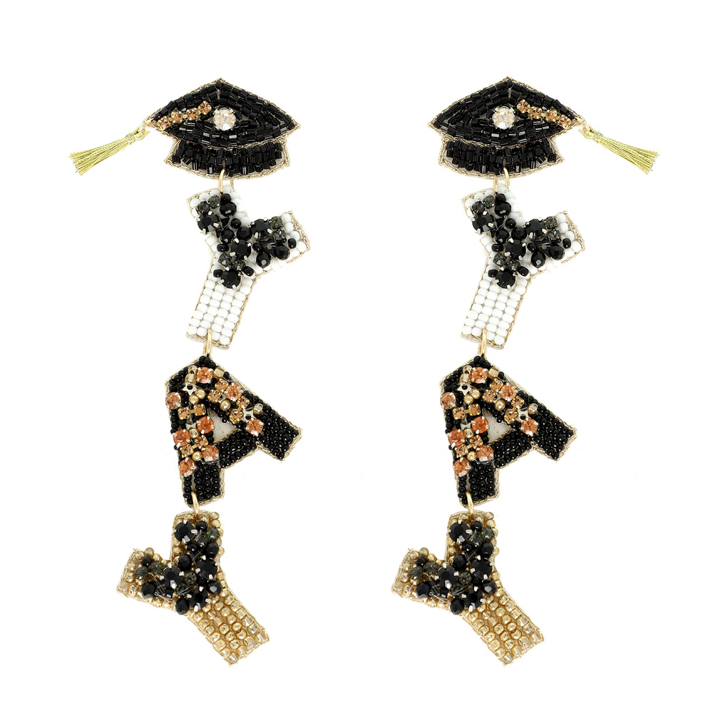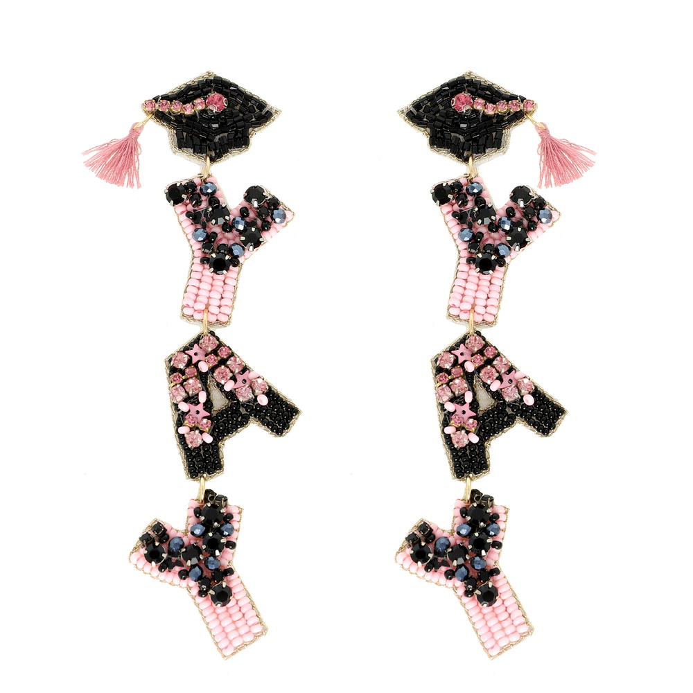 Yay Letter Beaded Rhinestone Graduate Cap Earrings